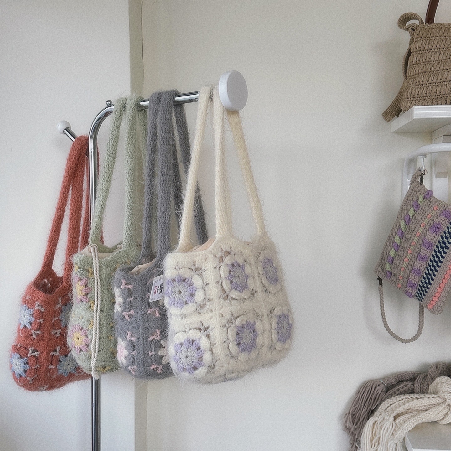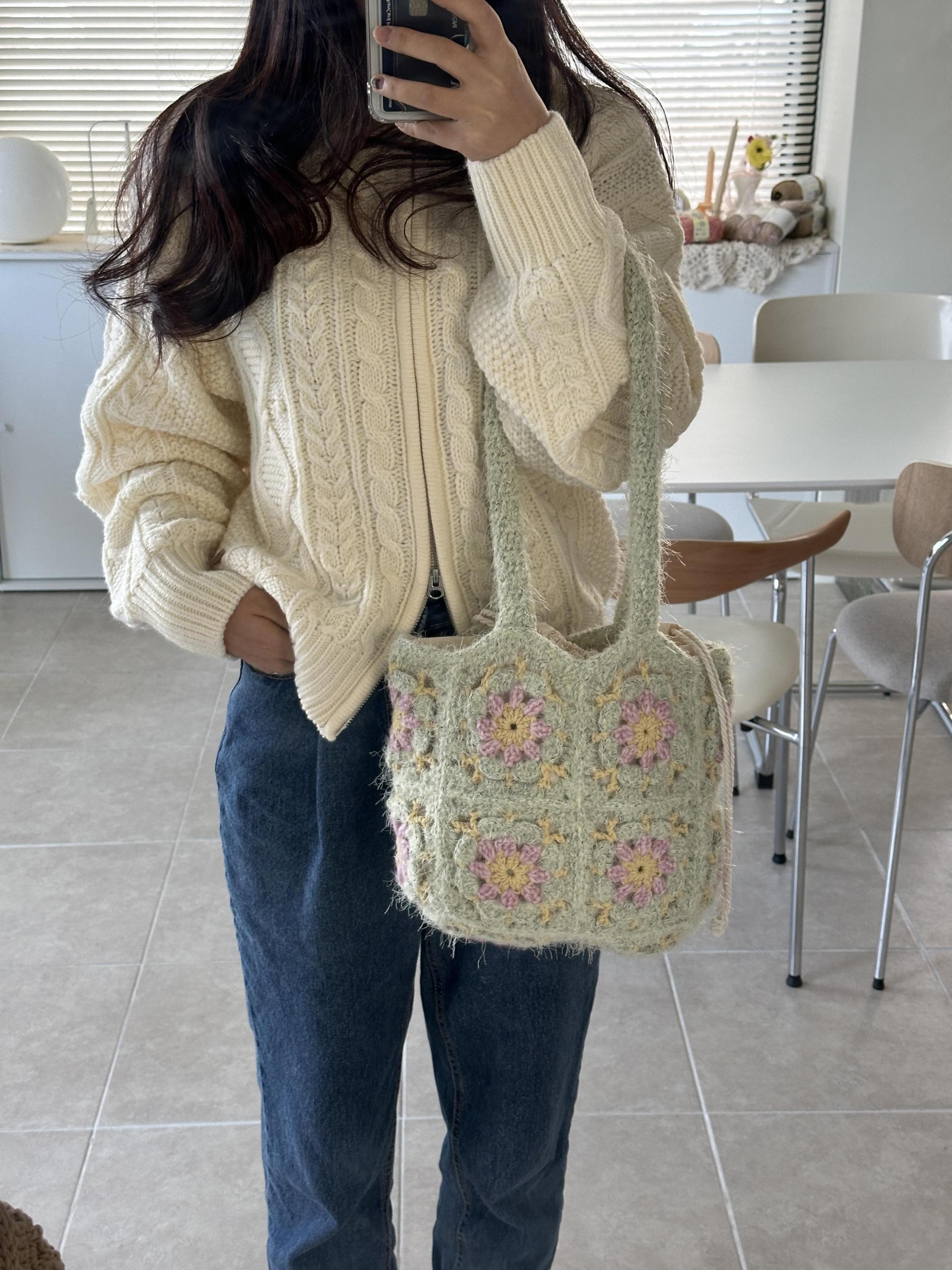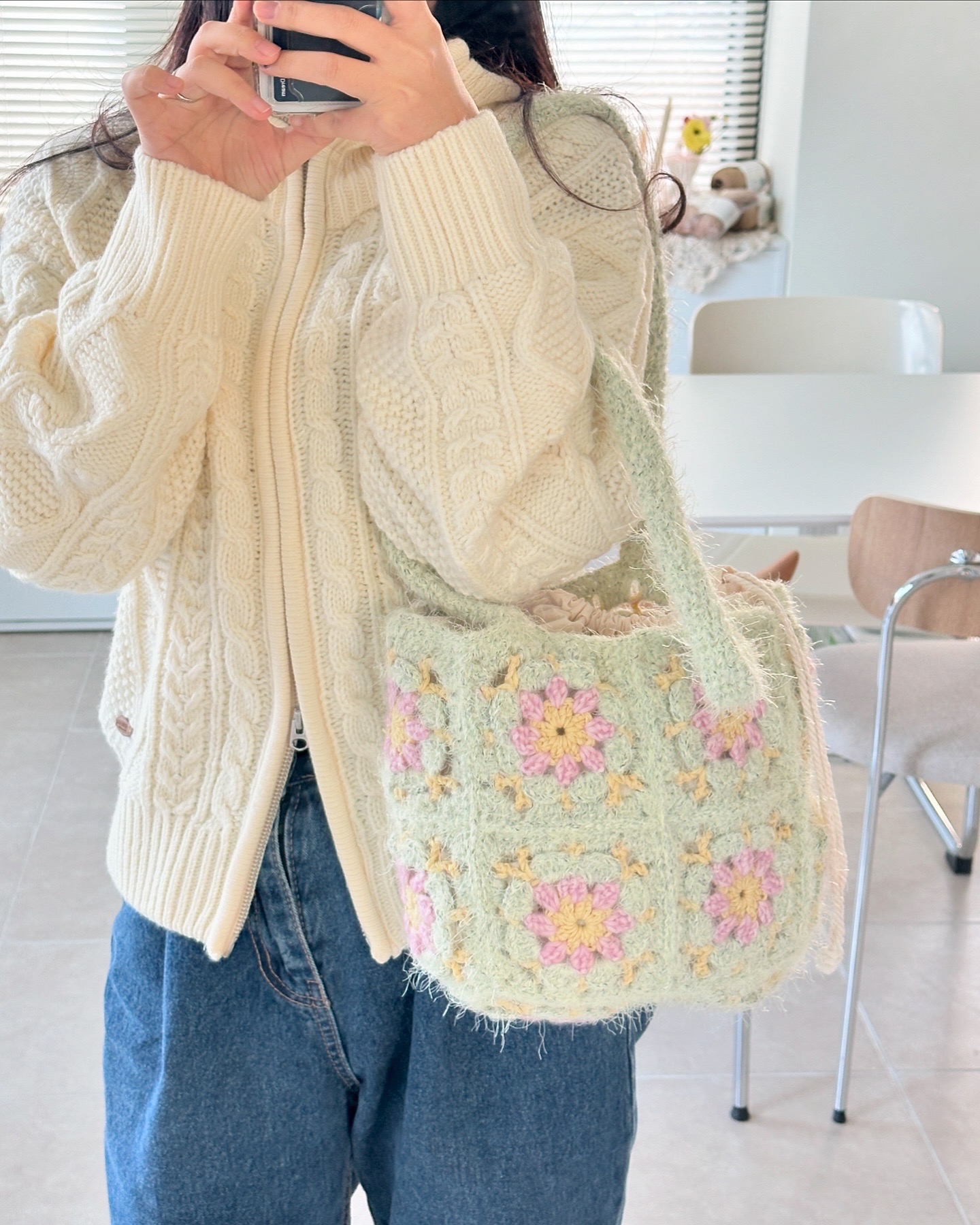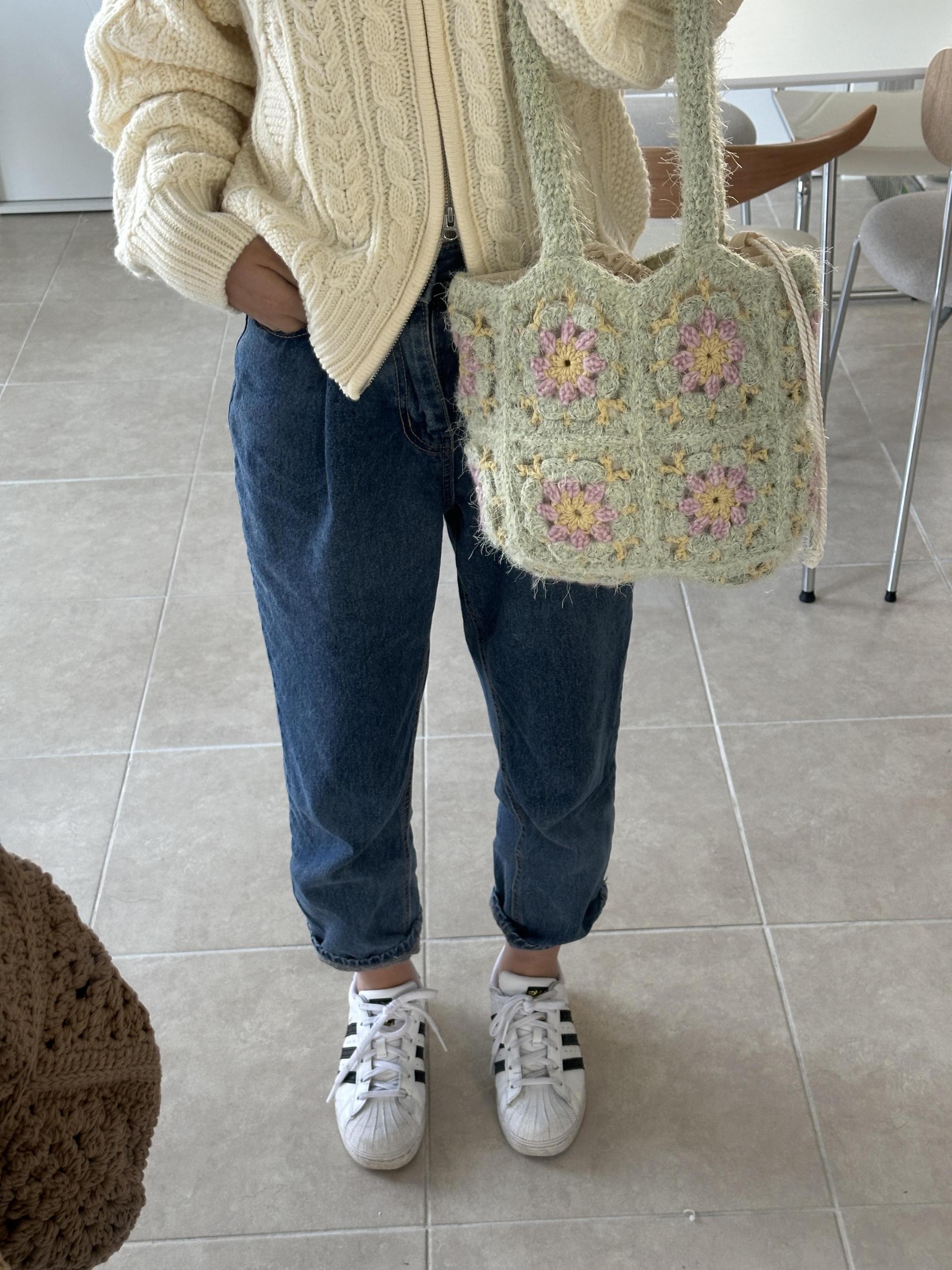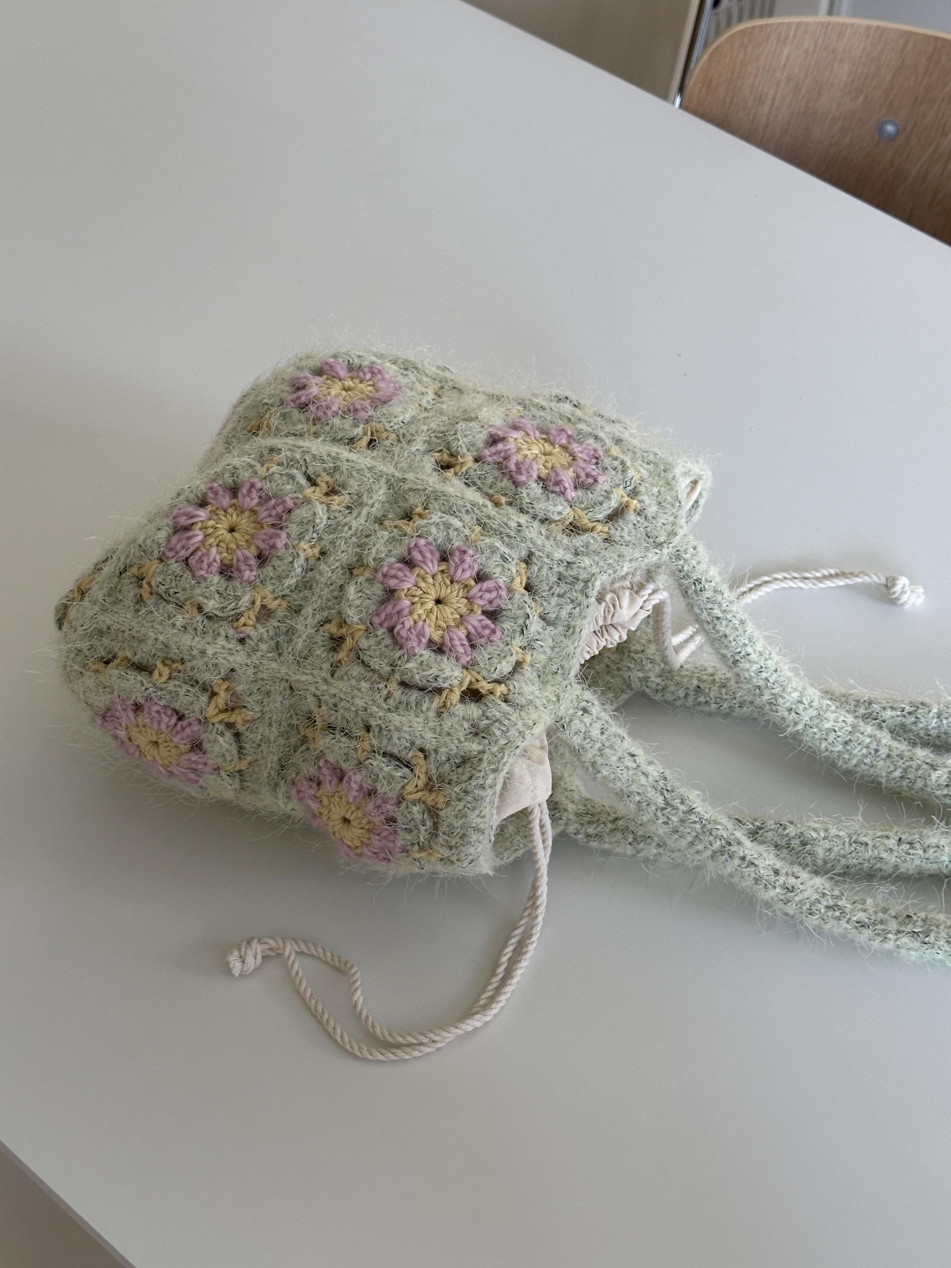 실을 자르지 않고 안고 이어가며 만들기 때문에 힘이 없는 가방은 아닙니다.