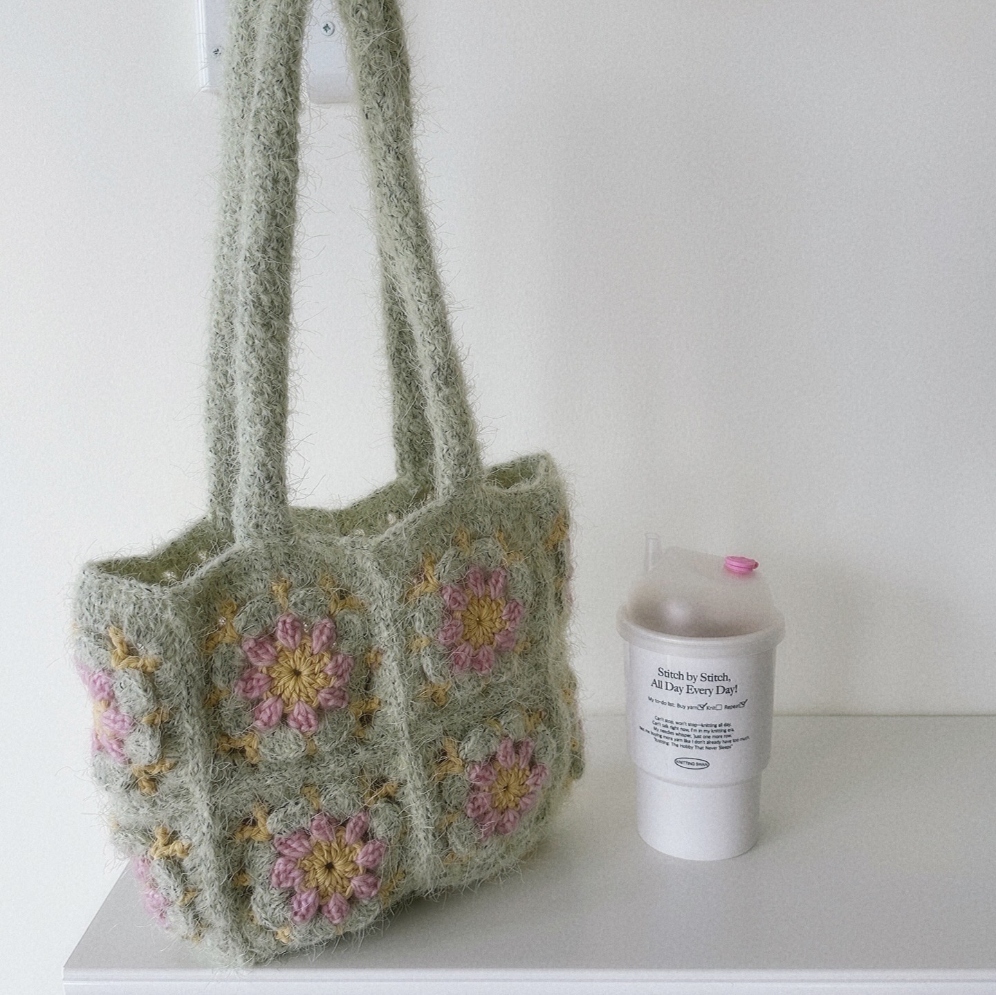 부드럽고 유연한 실로 만들기에 완성후의 가방 편물은 매우 가볍고 유들유들합니다.