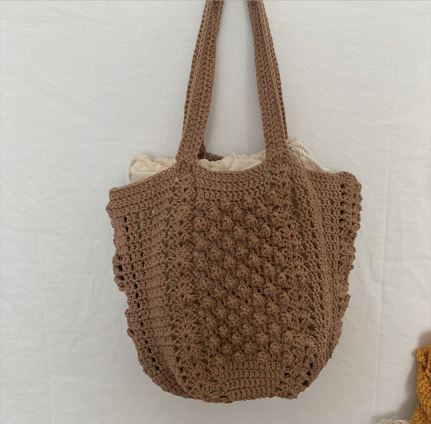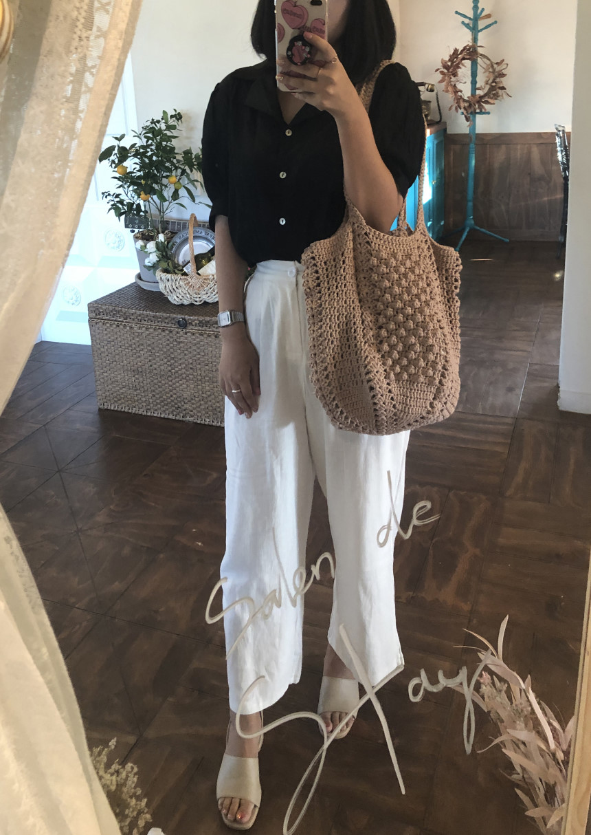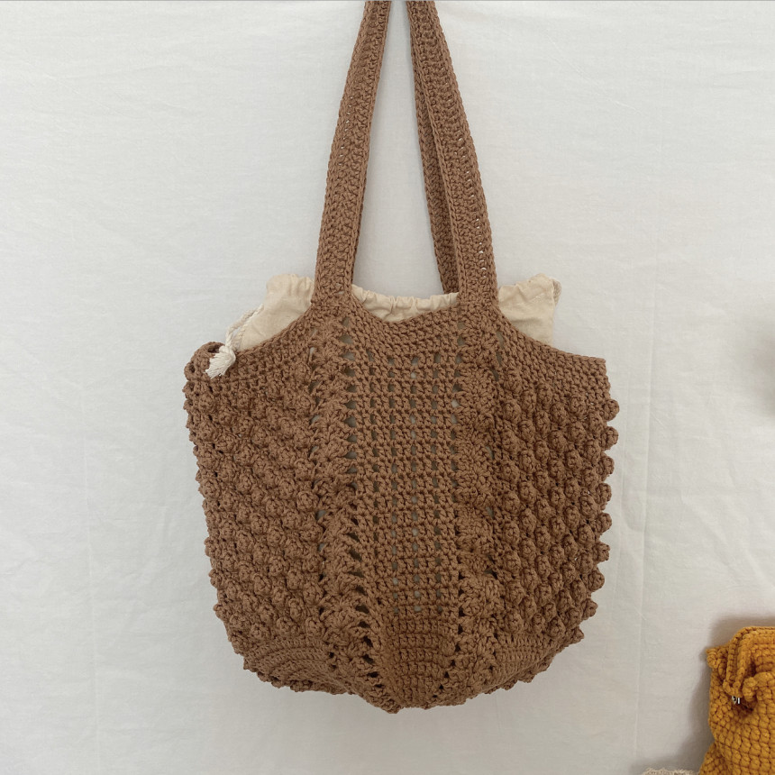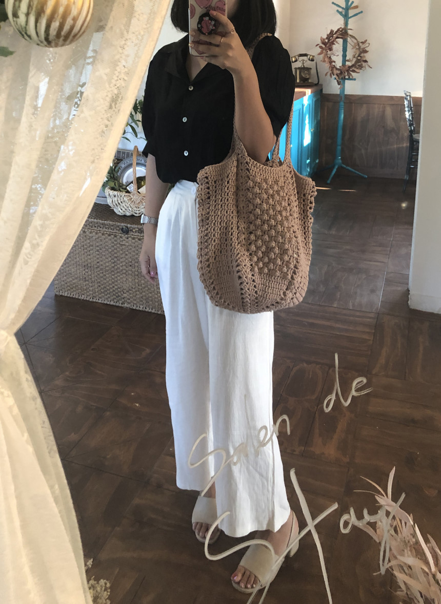 면과 마 소재가 믹스 되어 있는 실로 제작하는 편안한 숄더백 입니다.