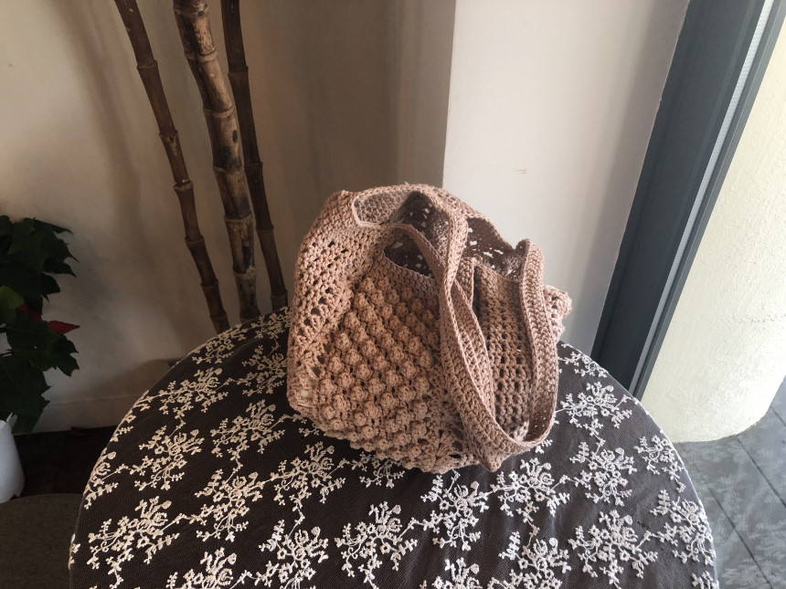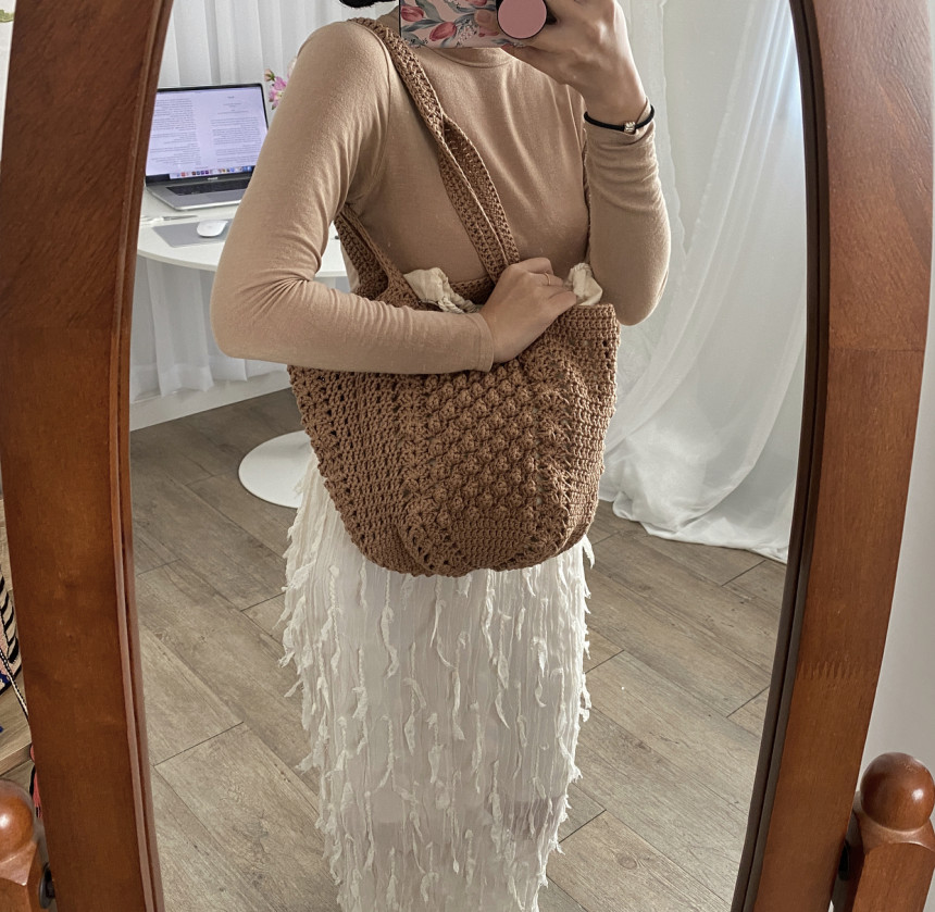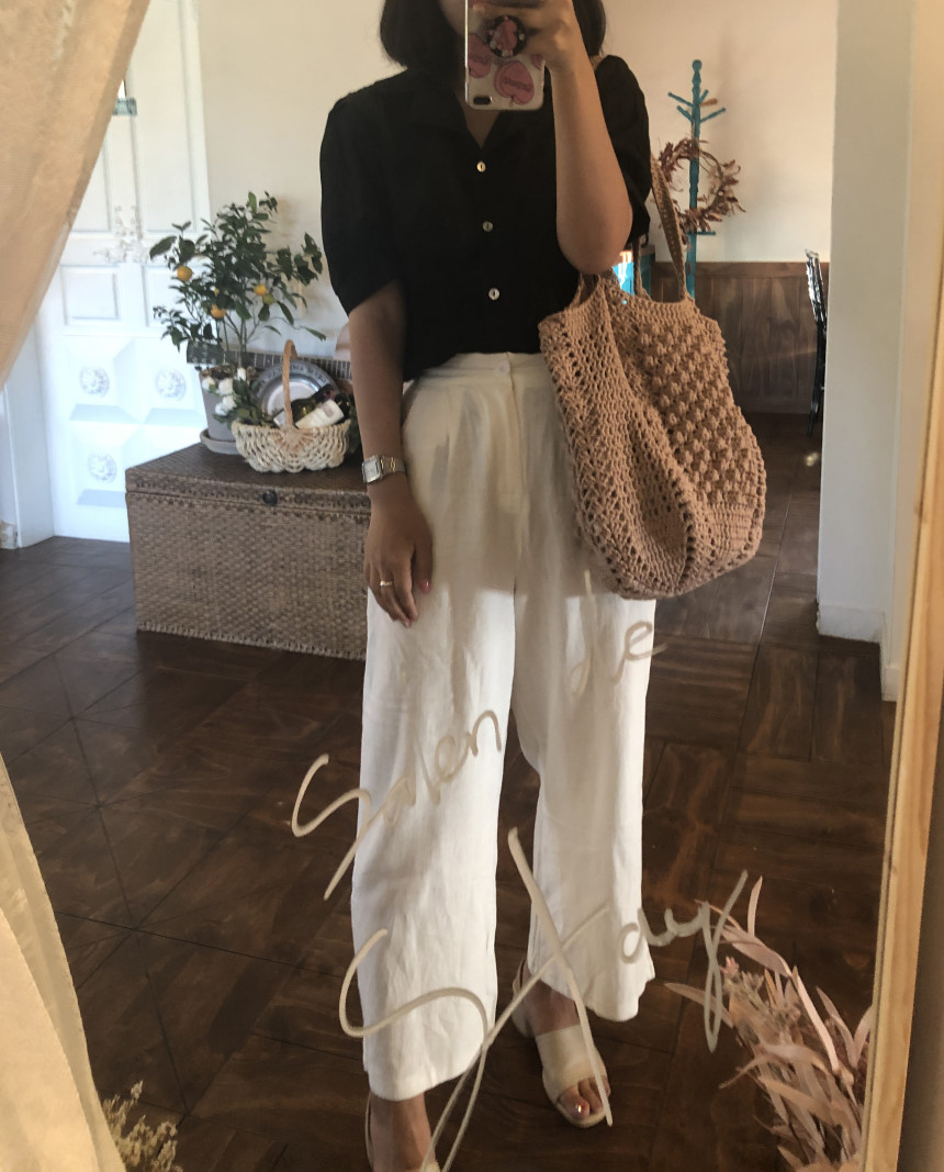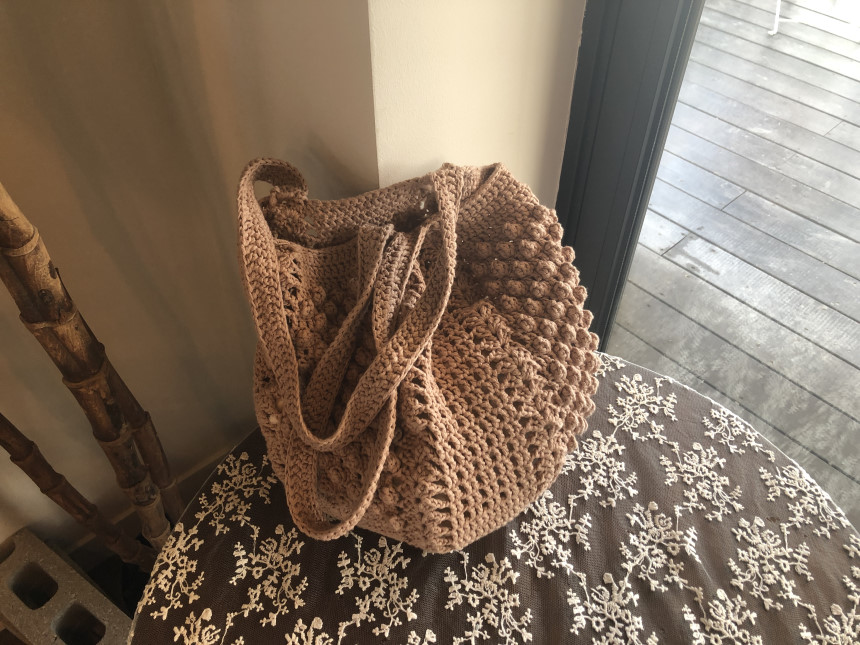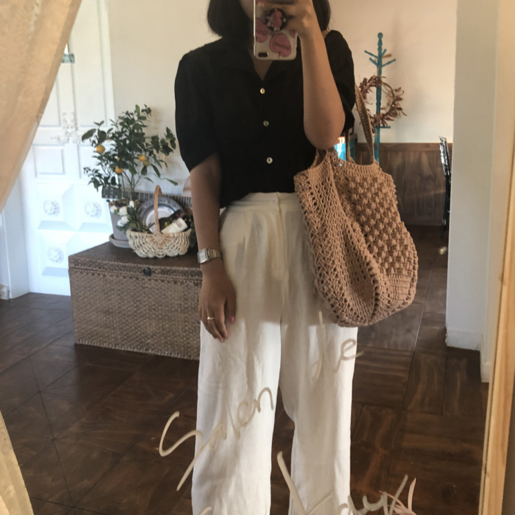 면과 마 소재가 믹스 되어 있는 실로 제작하는 편안한 숄더백 입니다.