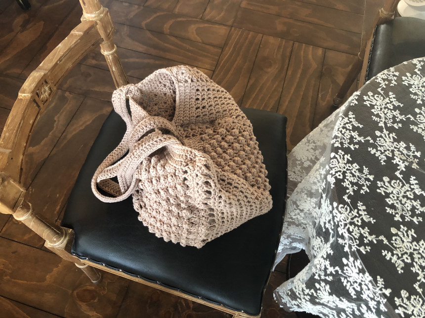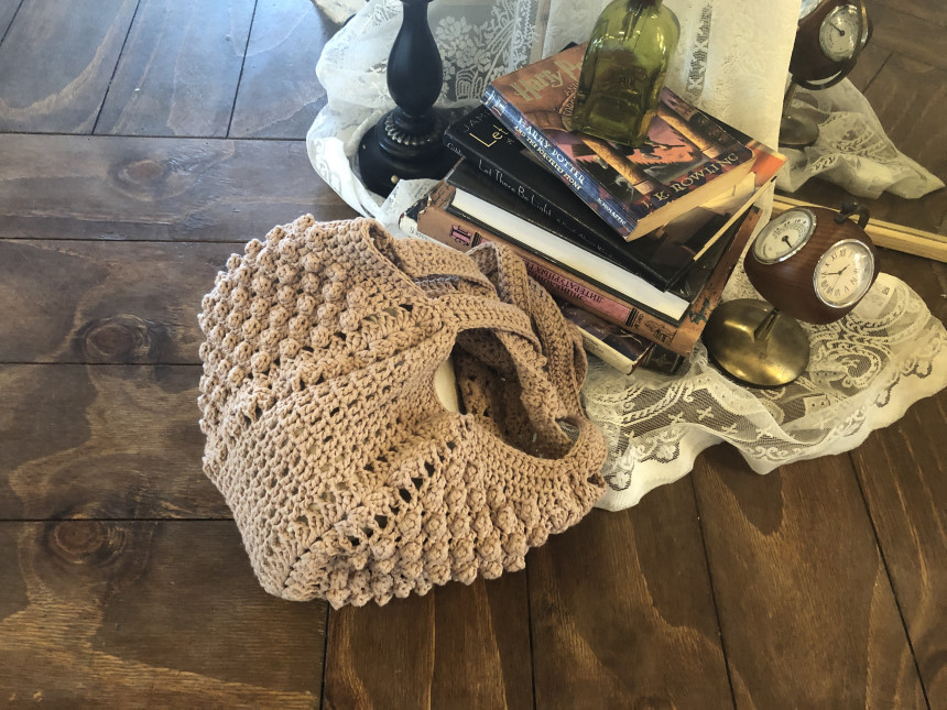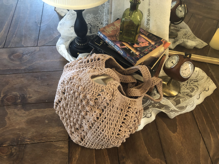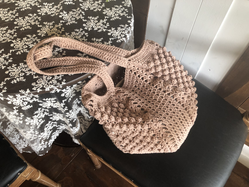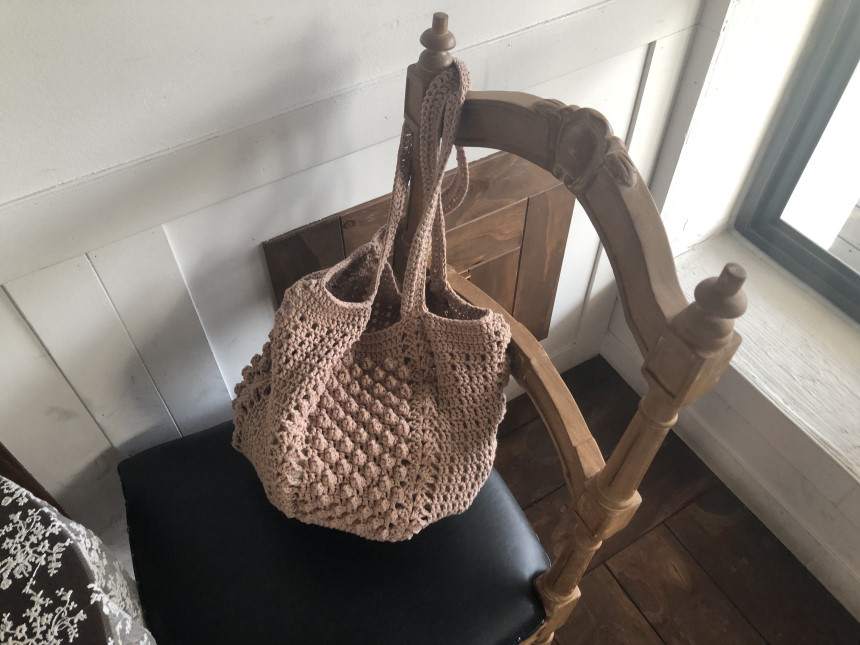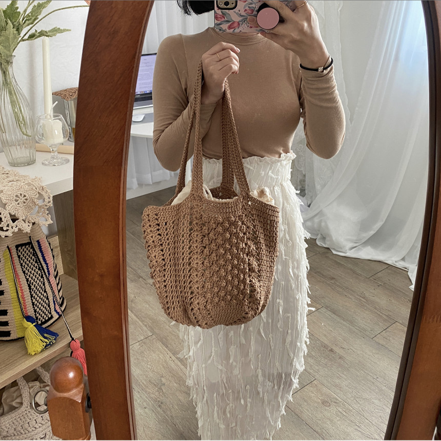 완성사이즈 : 바닥 지름 약 25cm, 세로 약 22cm, 끈길이 약 60cm