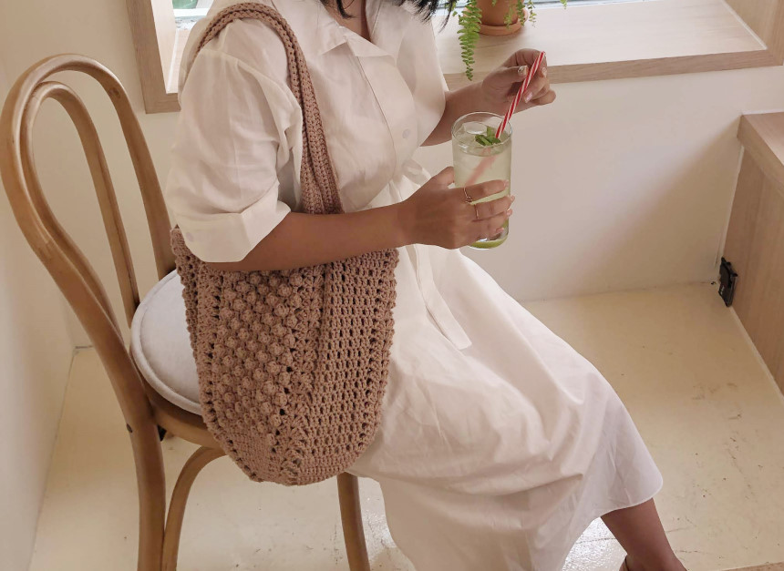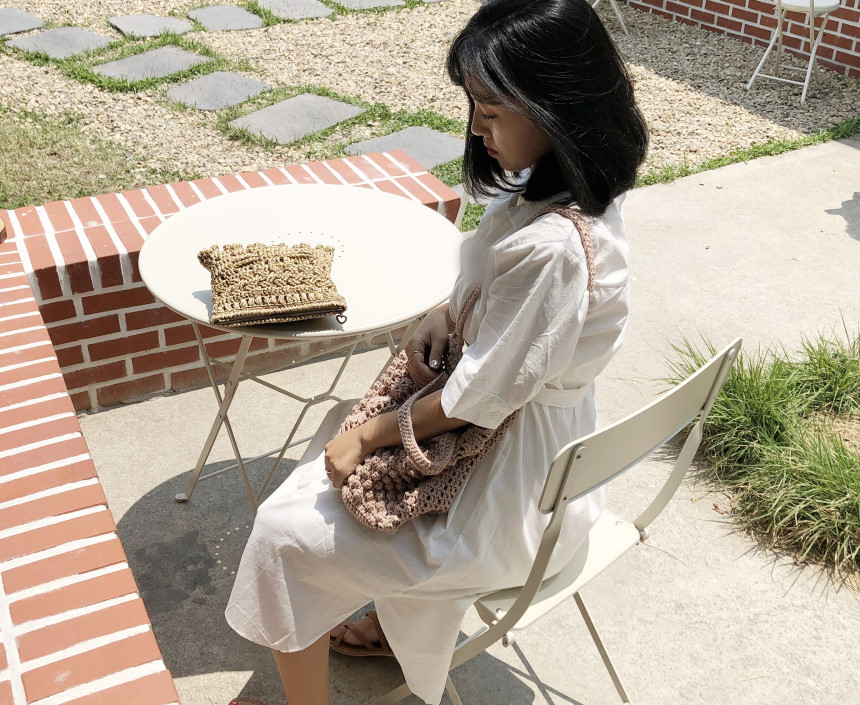 양쪽면이 다르게 제작되어 질리지 않고 네트백처럼 시원한 느낌을 줍니다.