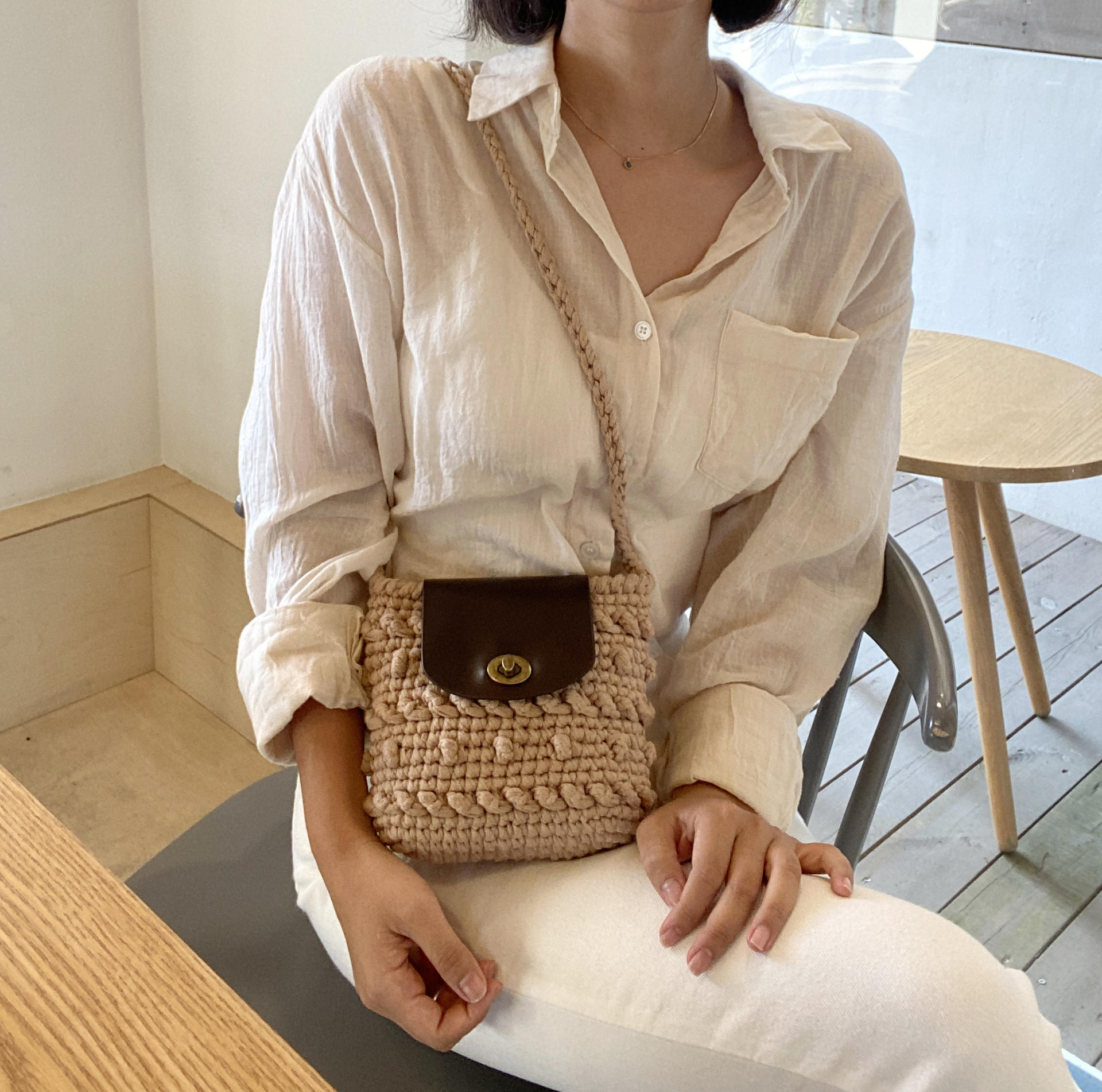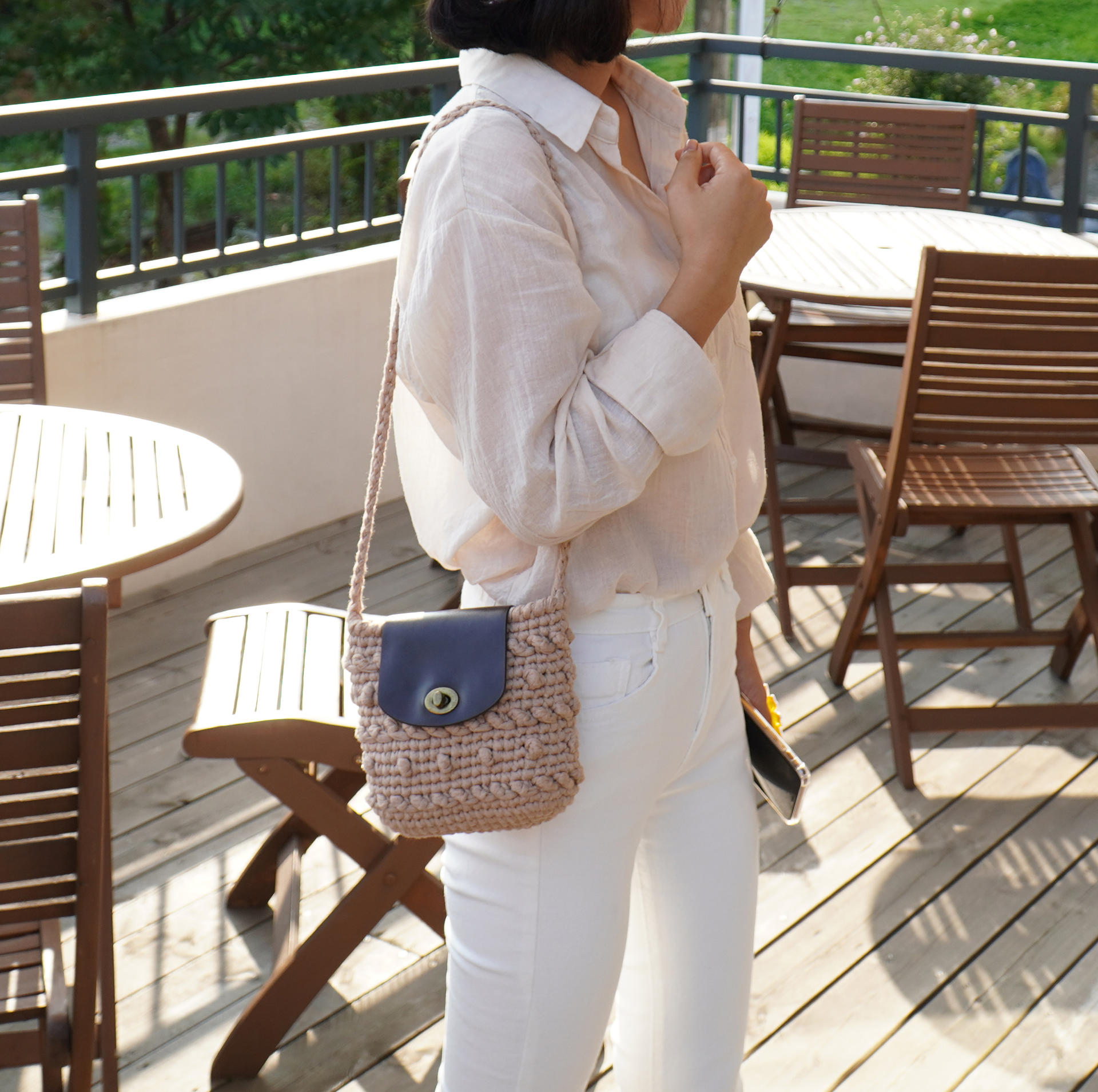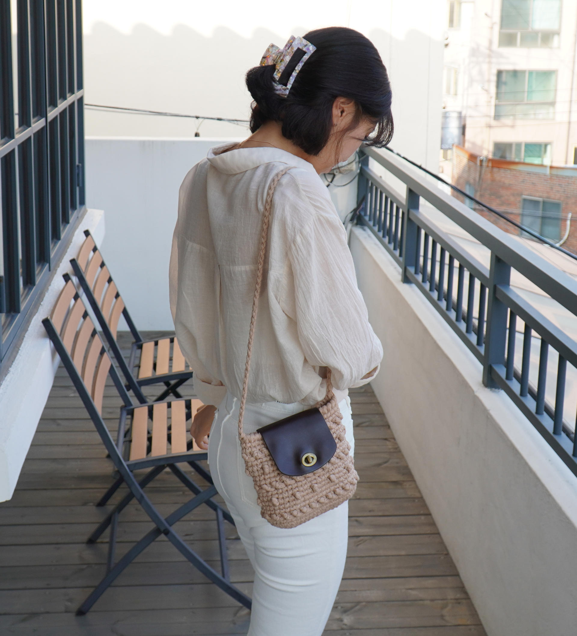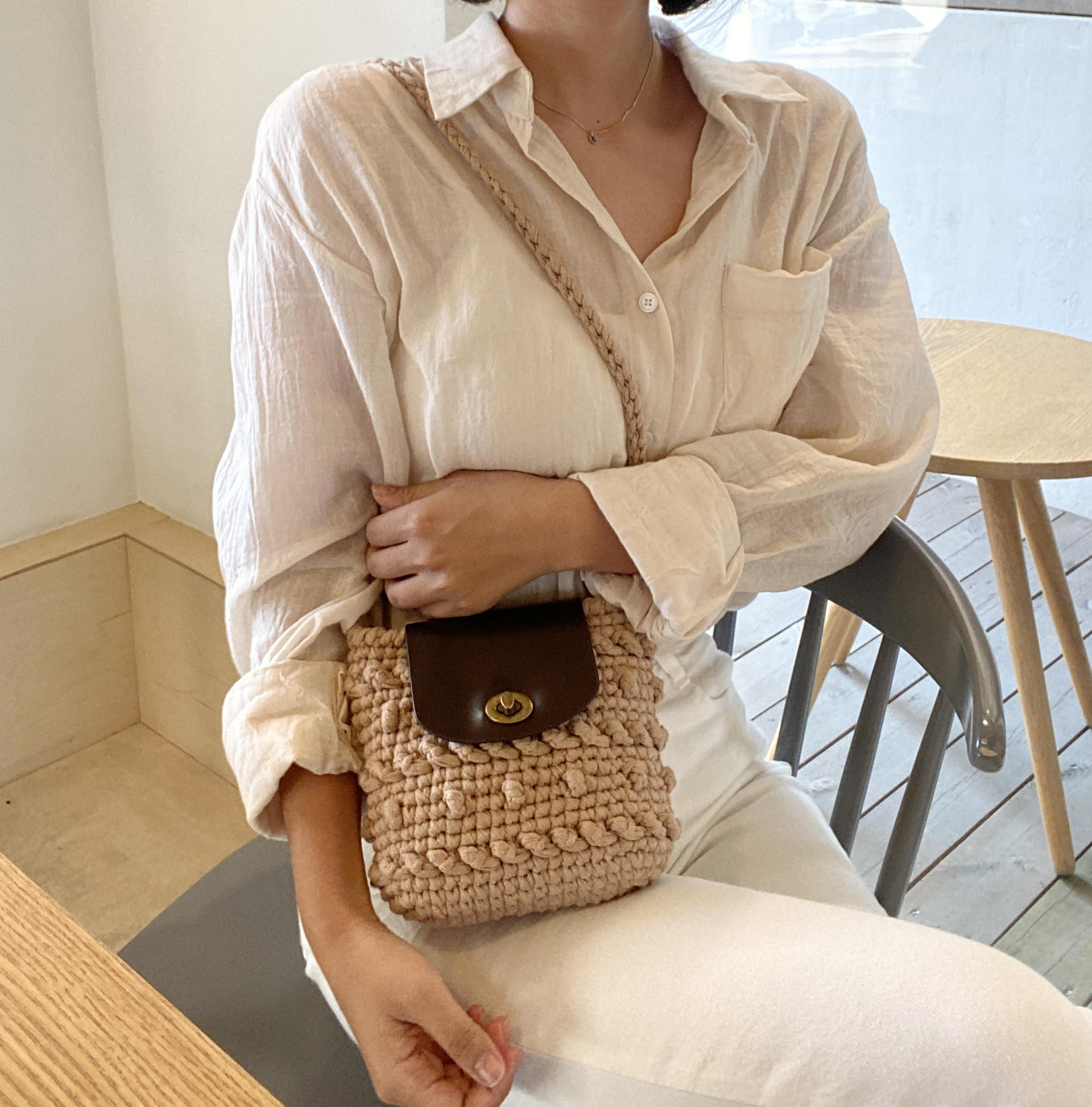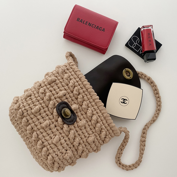 가방 완성 후 편물에 직접 바느질하여 고정시켜 주는 타입 입니다.