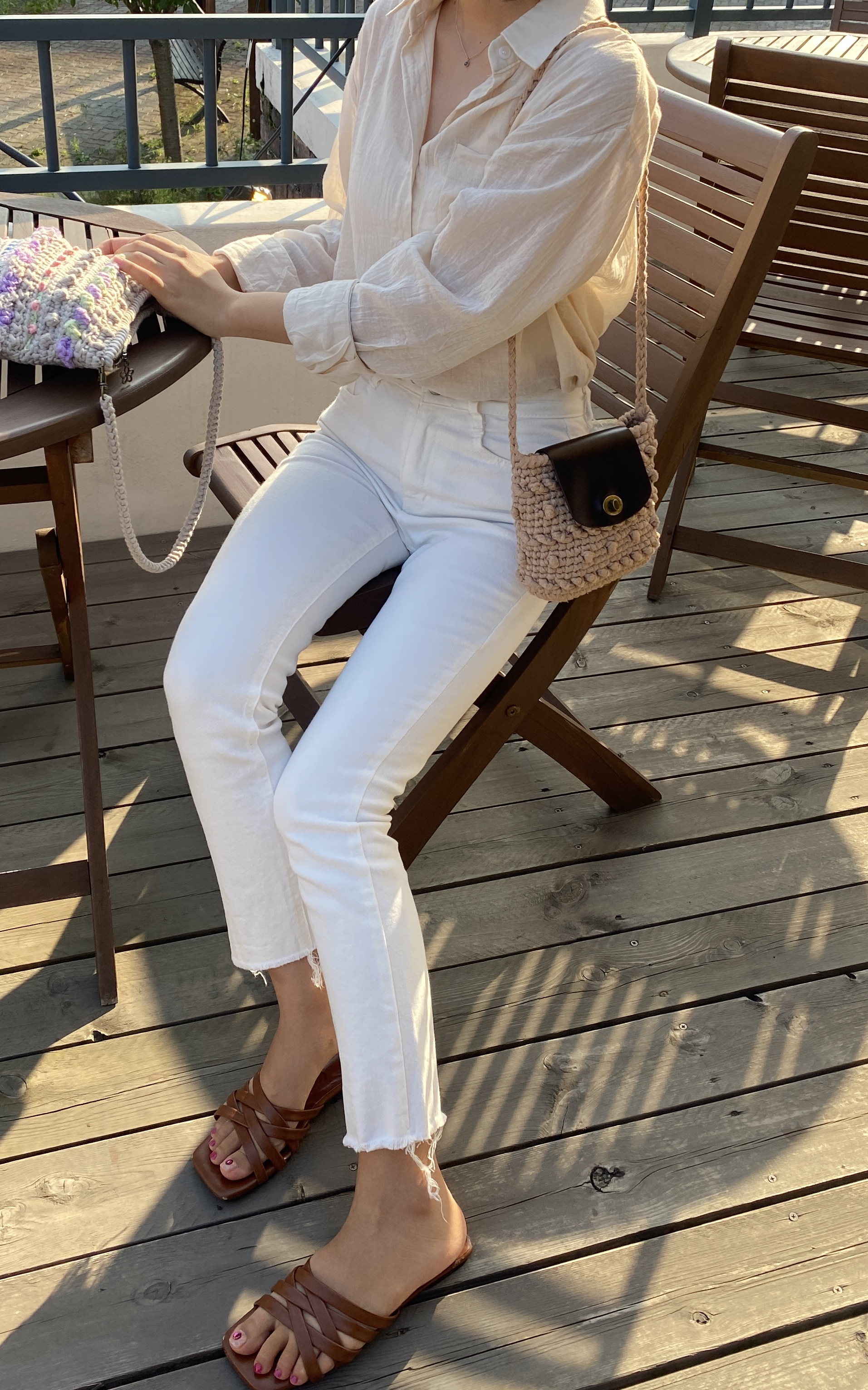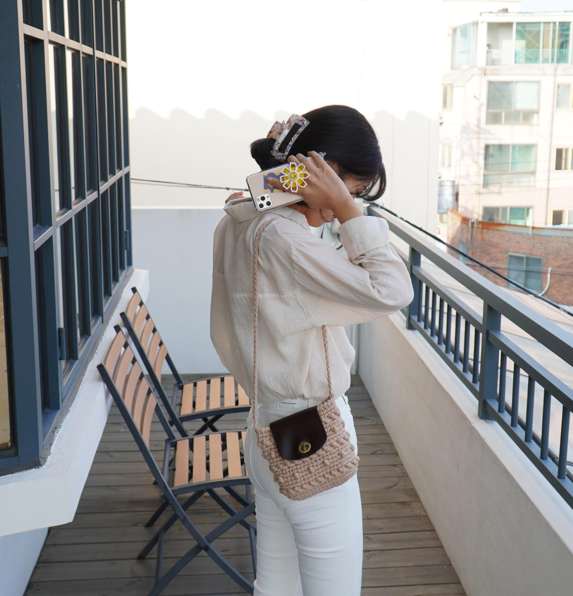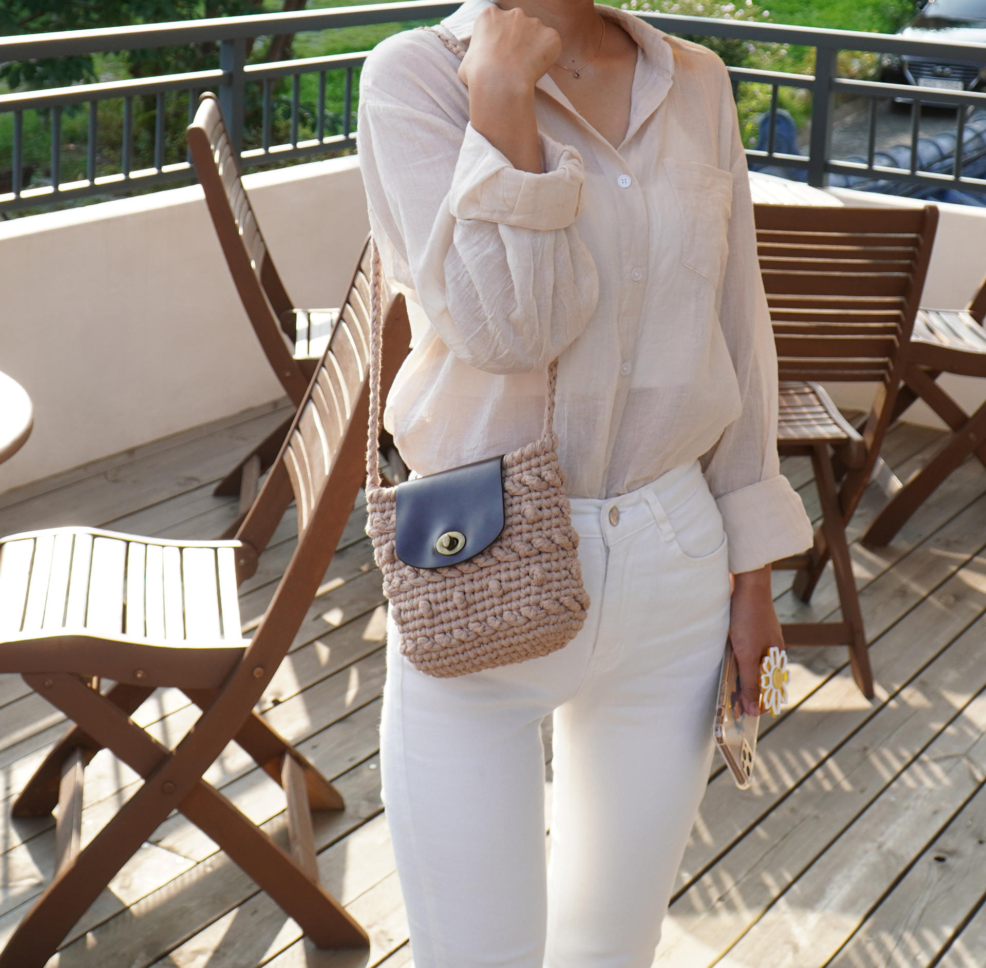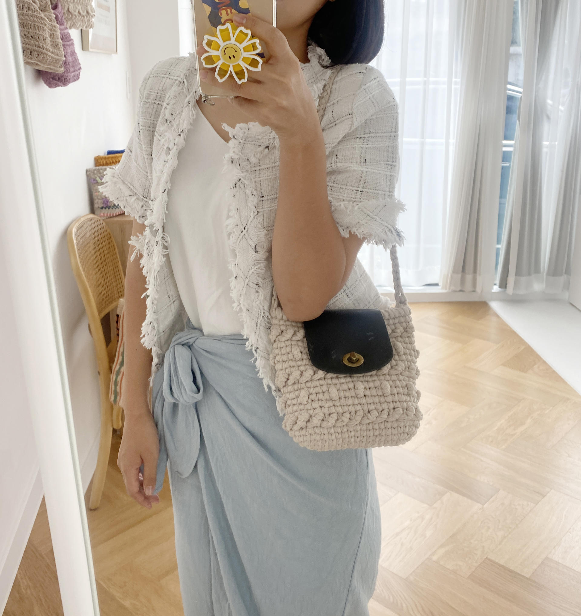가방 완성 후 편물에 직접 바느질하여 고정시켜 주는 타입 입니다.