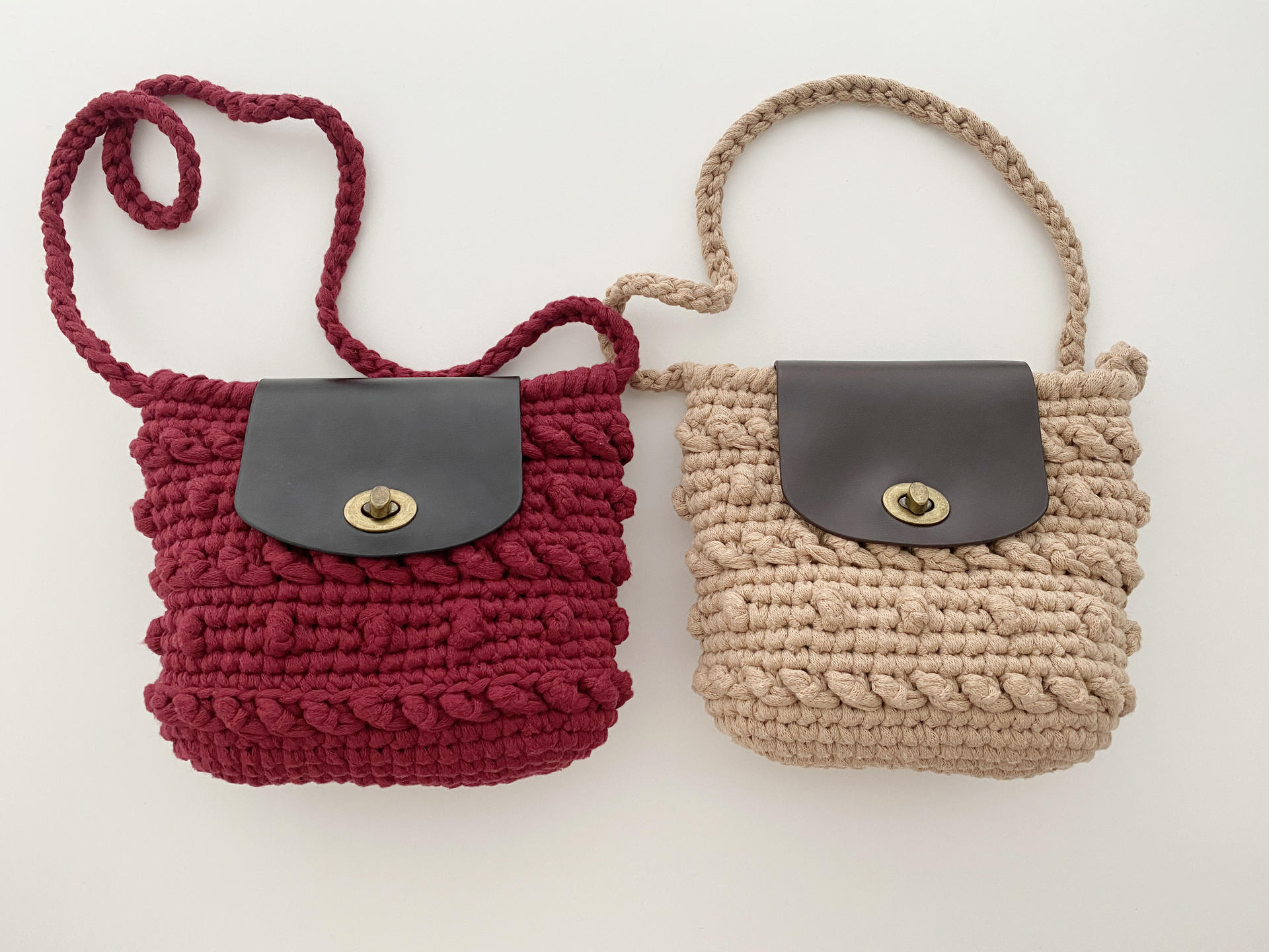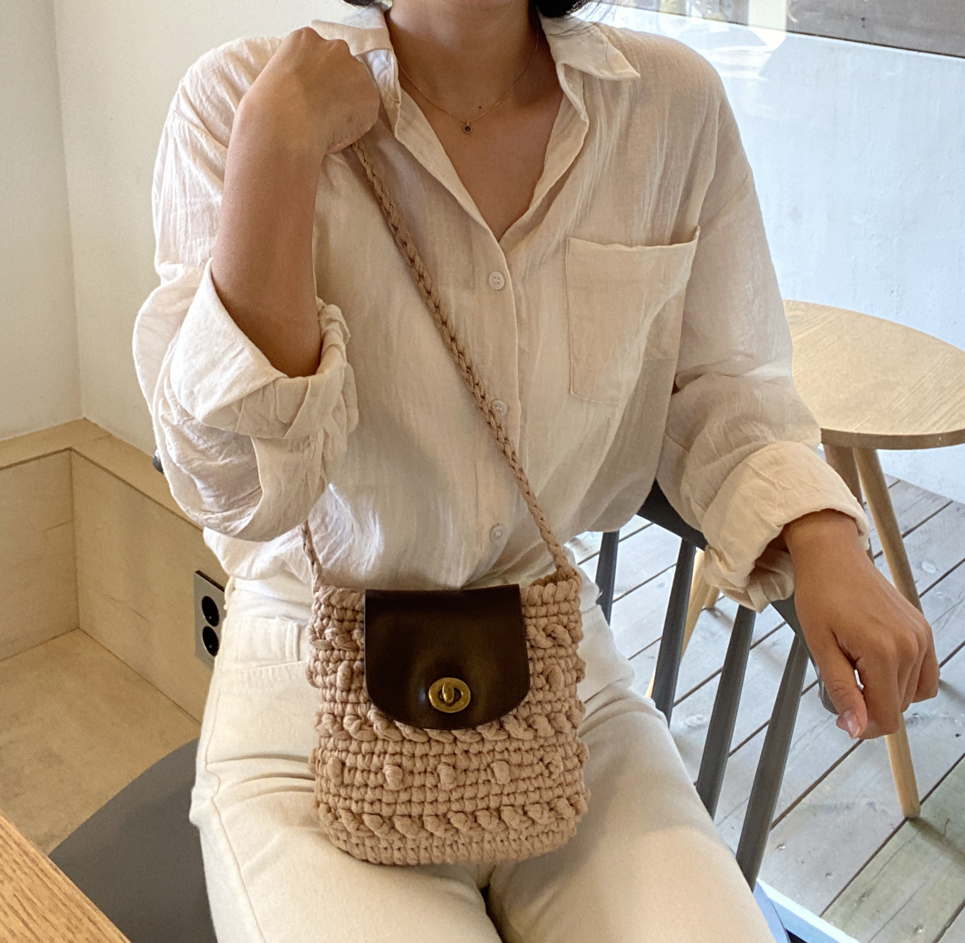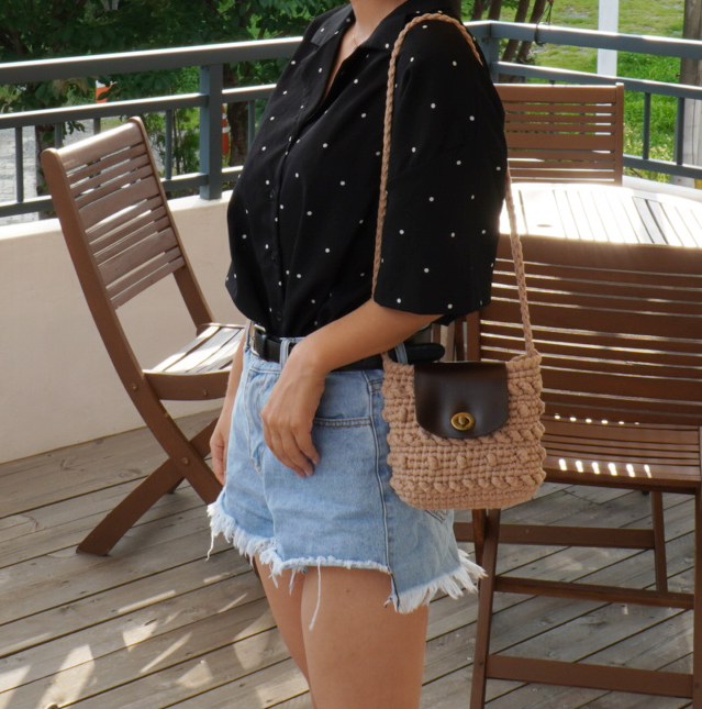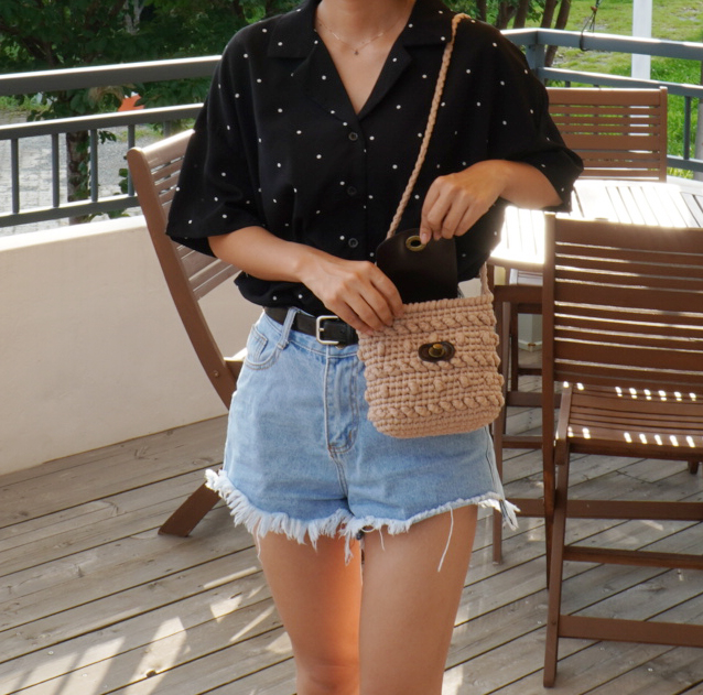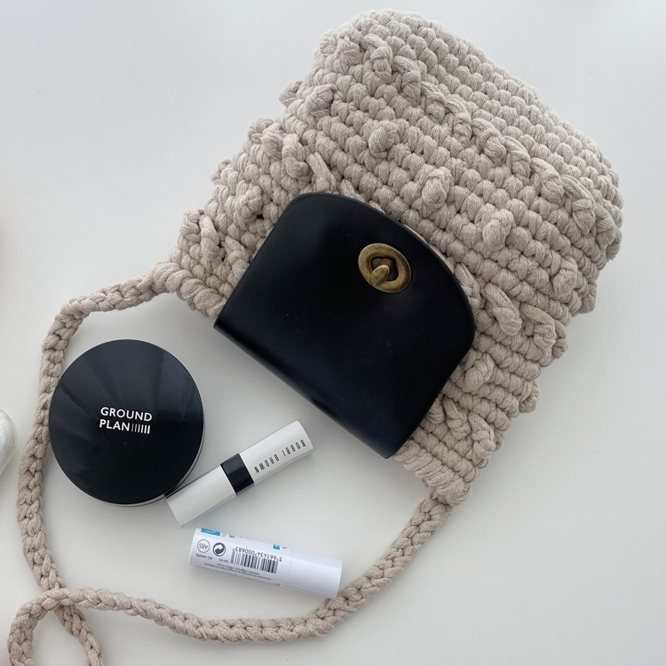 크림컬러 실과 블랙 가죽 부자재를 이용하여 완성한 샘플사진 입니다 :)
