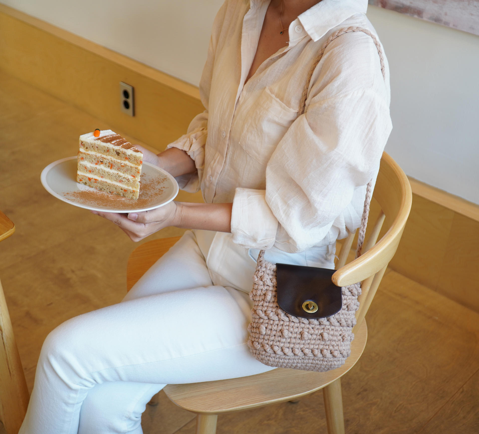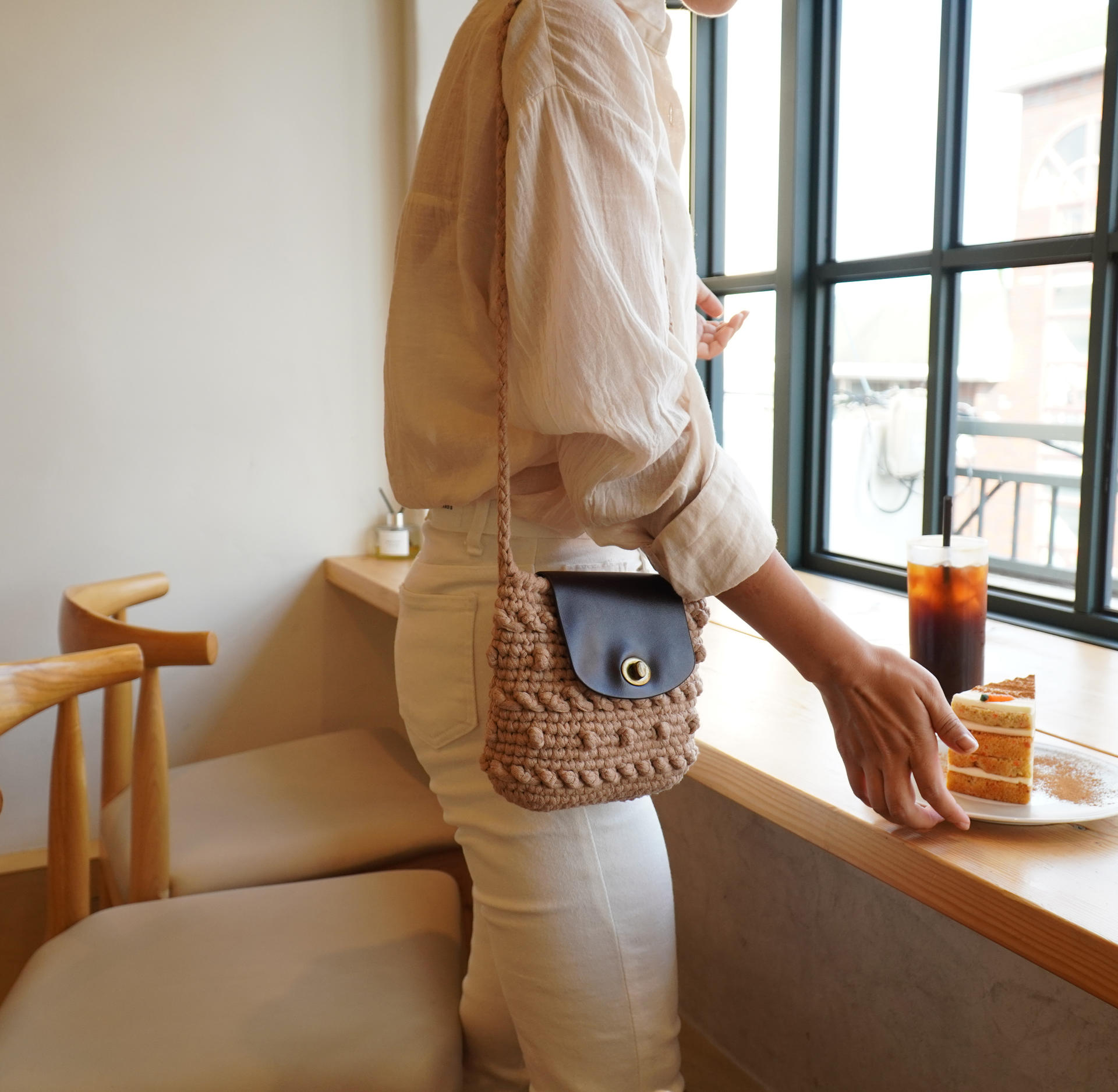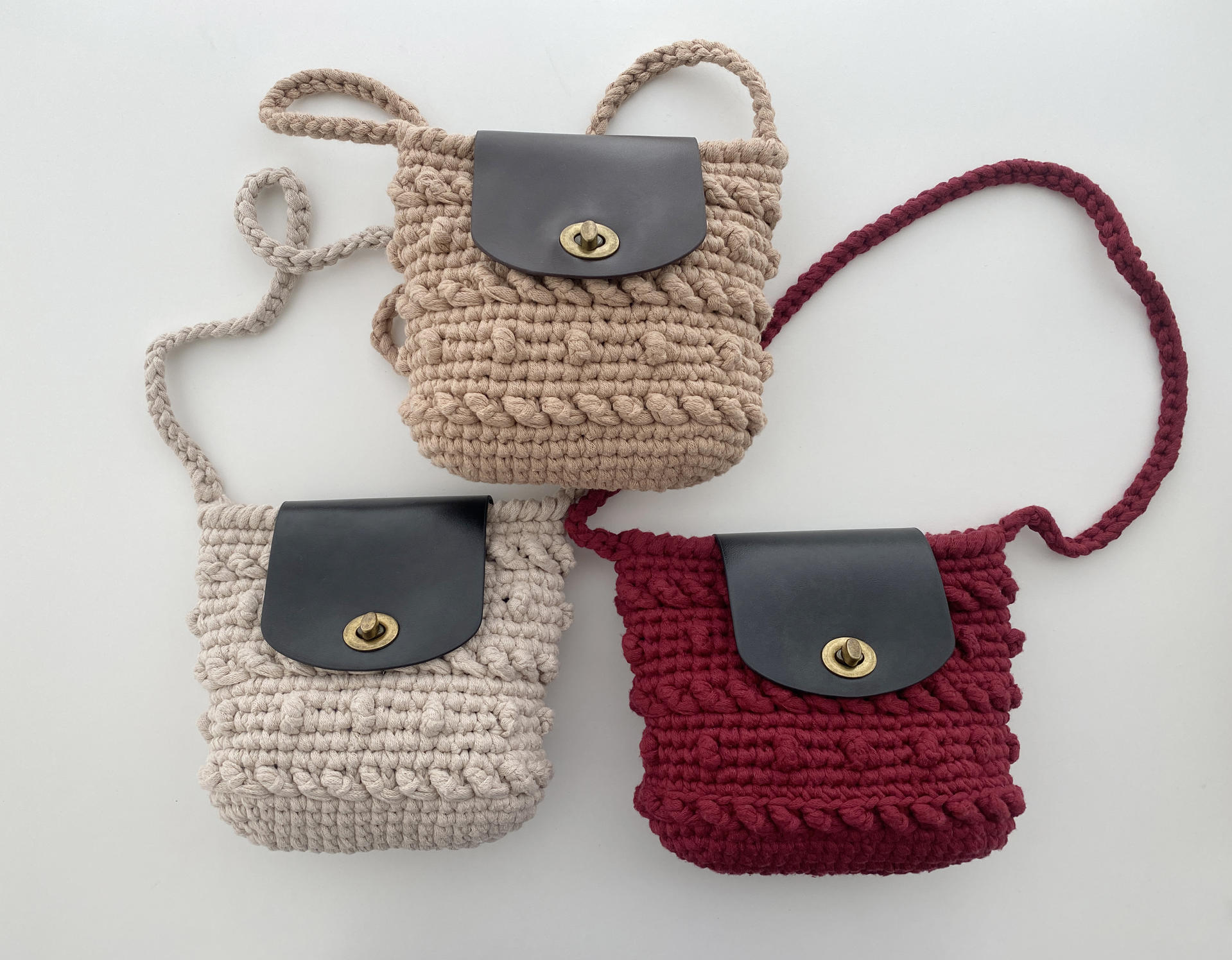크림컬러 실과 블랙 가죽 부자재를 이용하여 완성한 샘플사진 입니다 :)