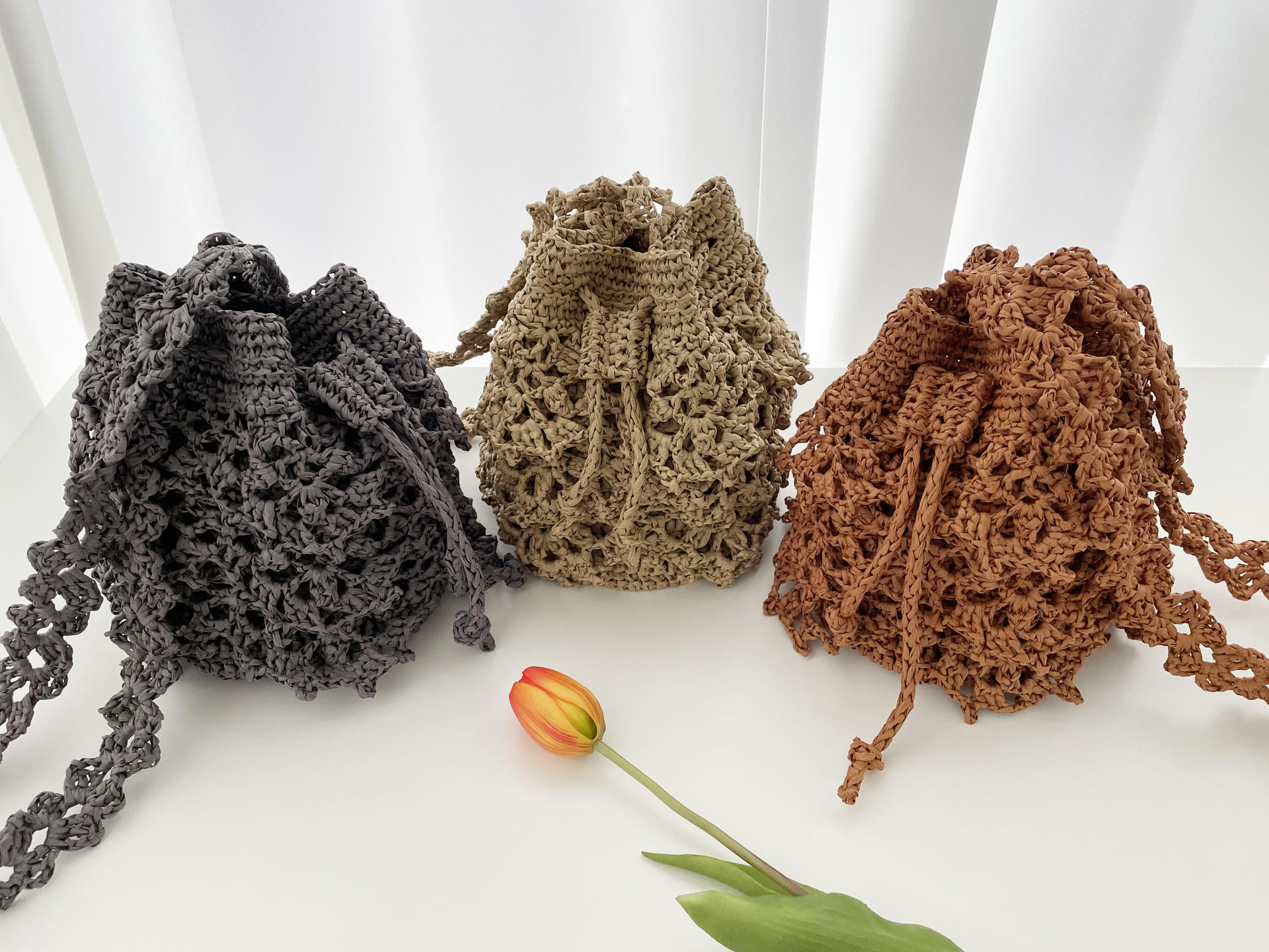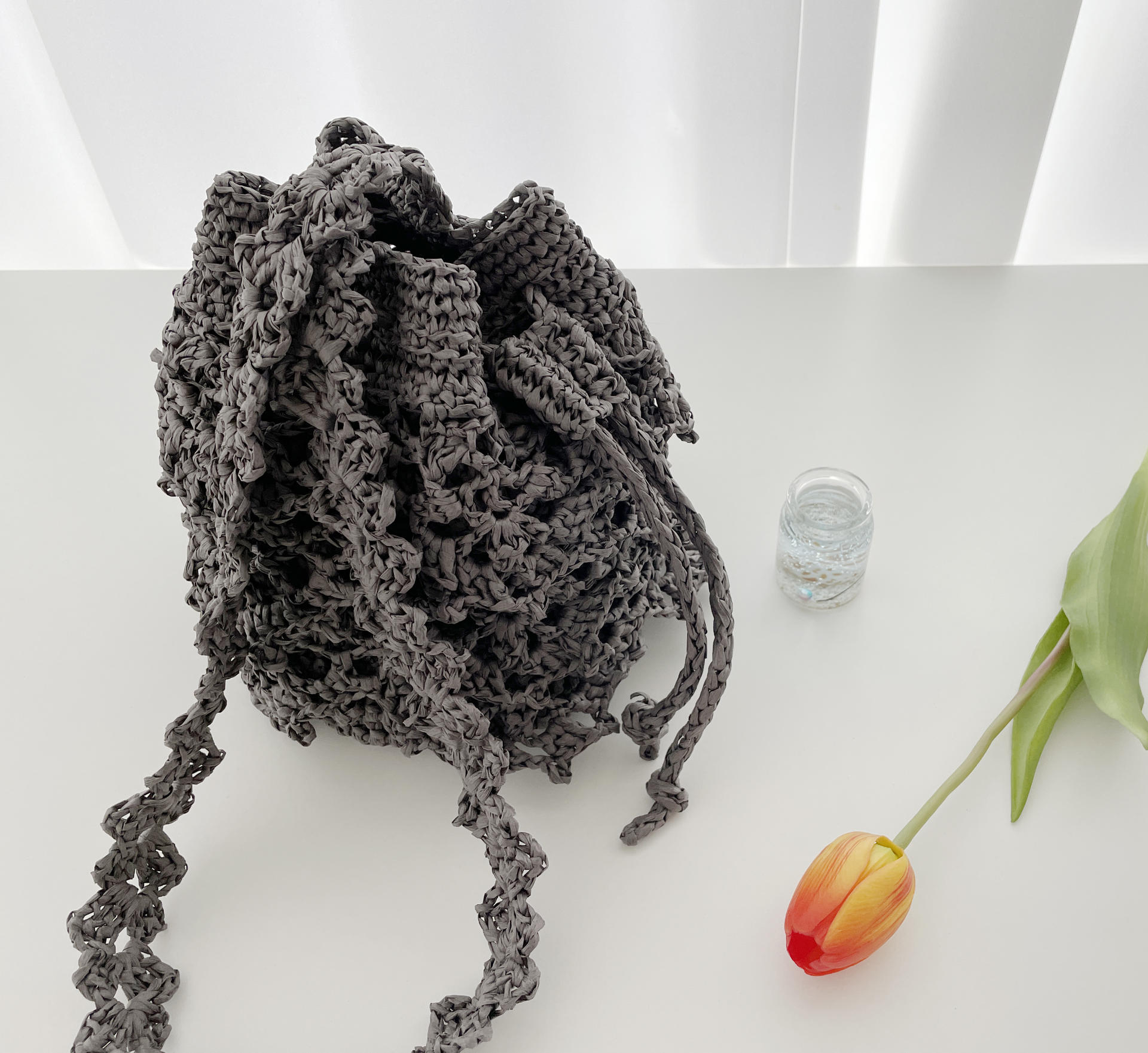 종이실인 레터실 4볼로 만드는 귀여운 미니 사이즈의 레이스 버킷백 입니다.