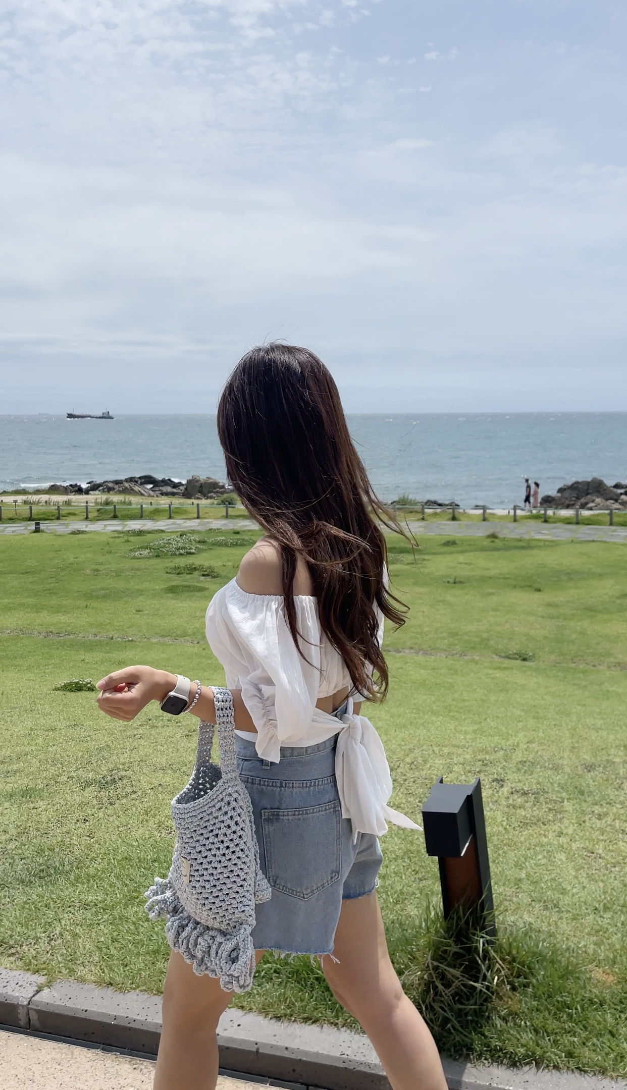 뒷 쪽은 어깨에 매는 숄더끈으로