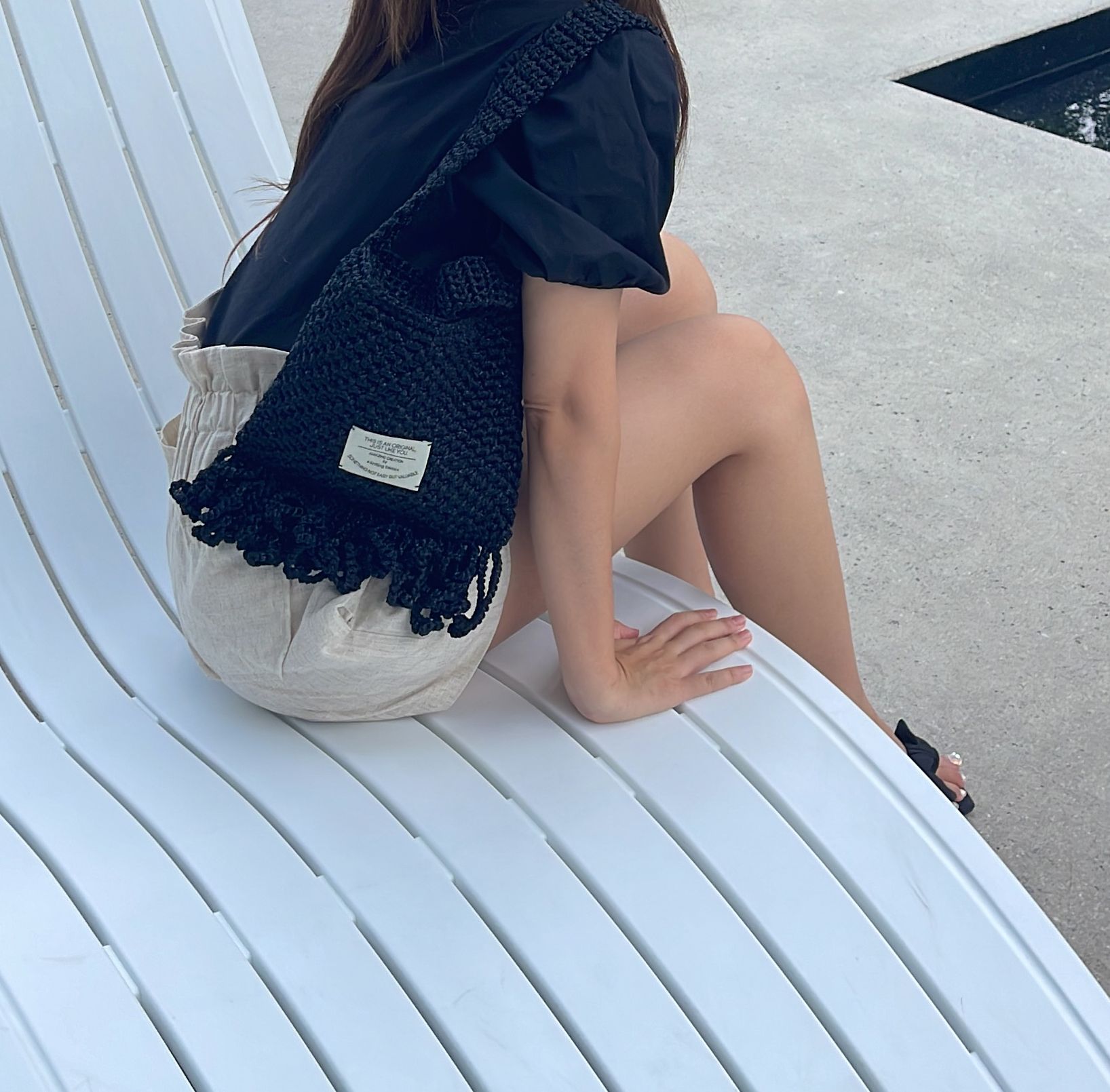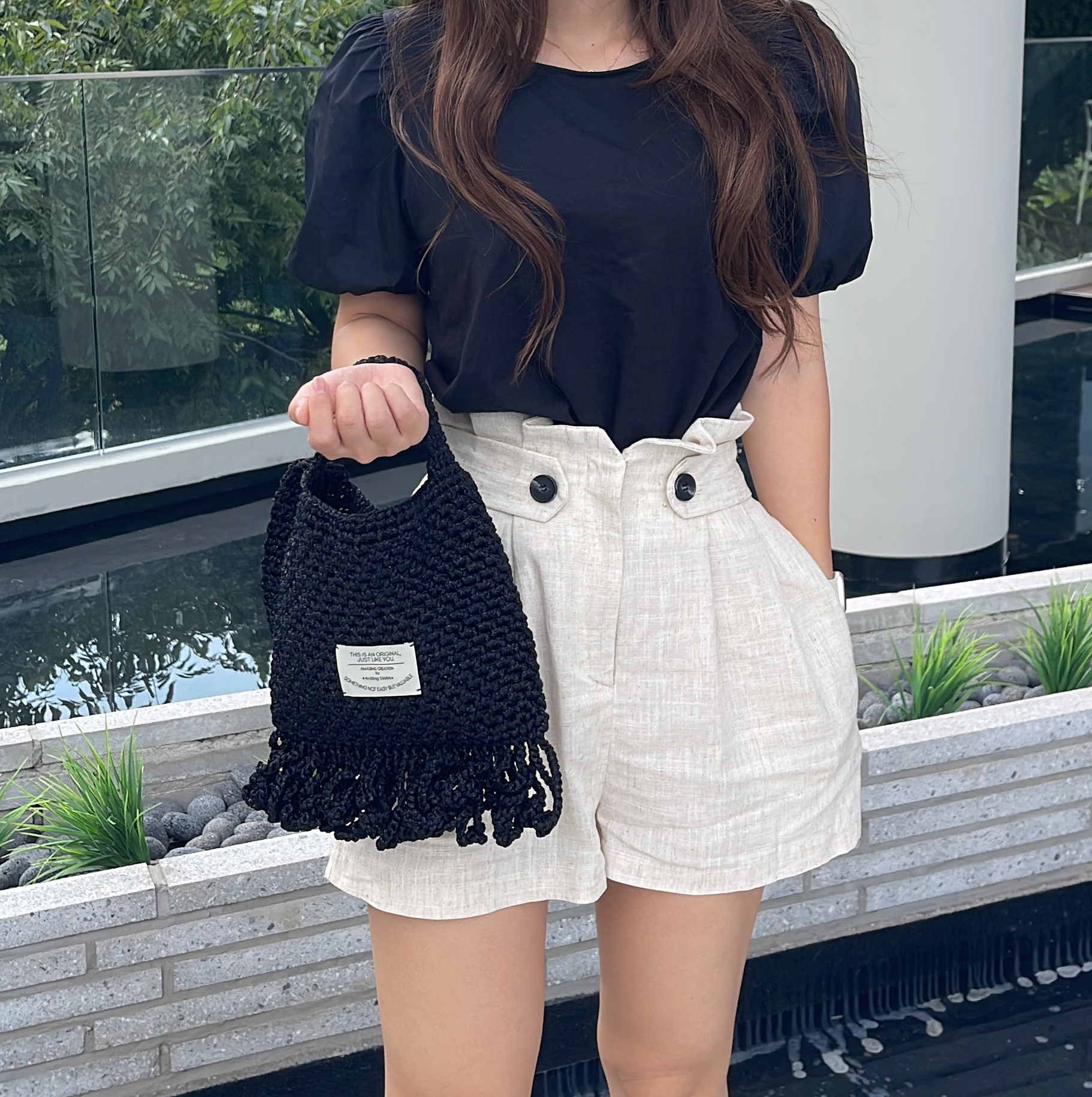 가방 밑단에는 프린지 장식을 만들어 귀여움을 더해주었습니다.