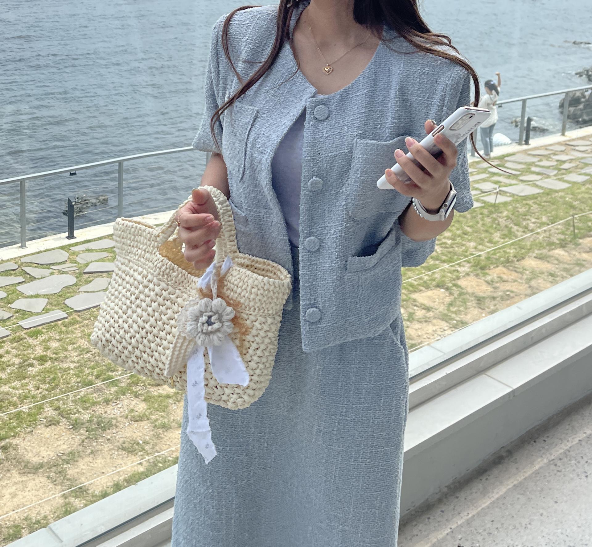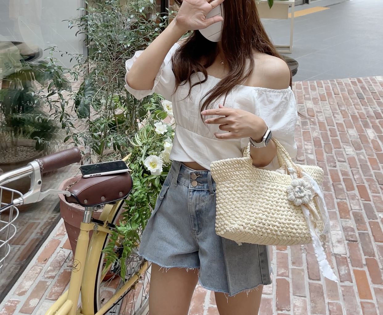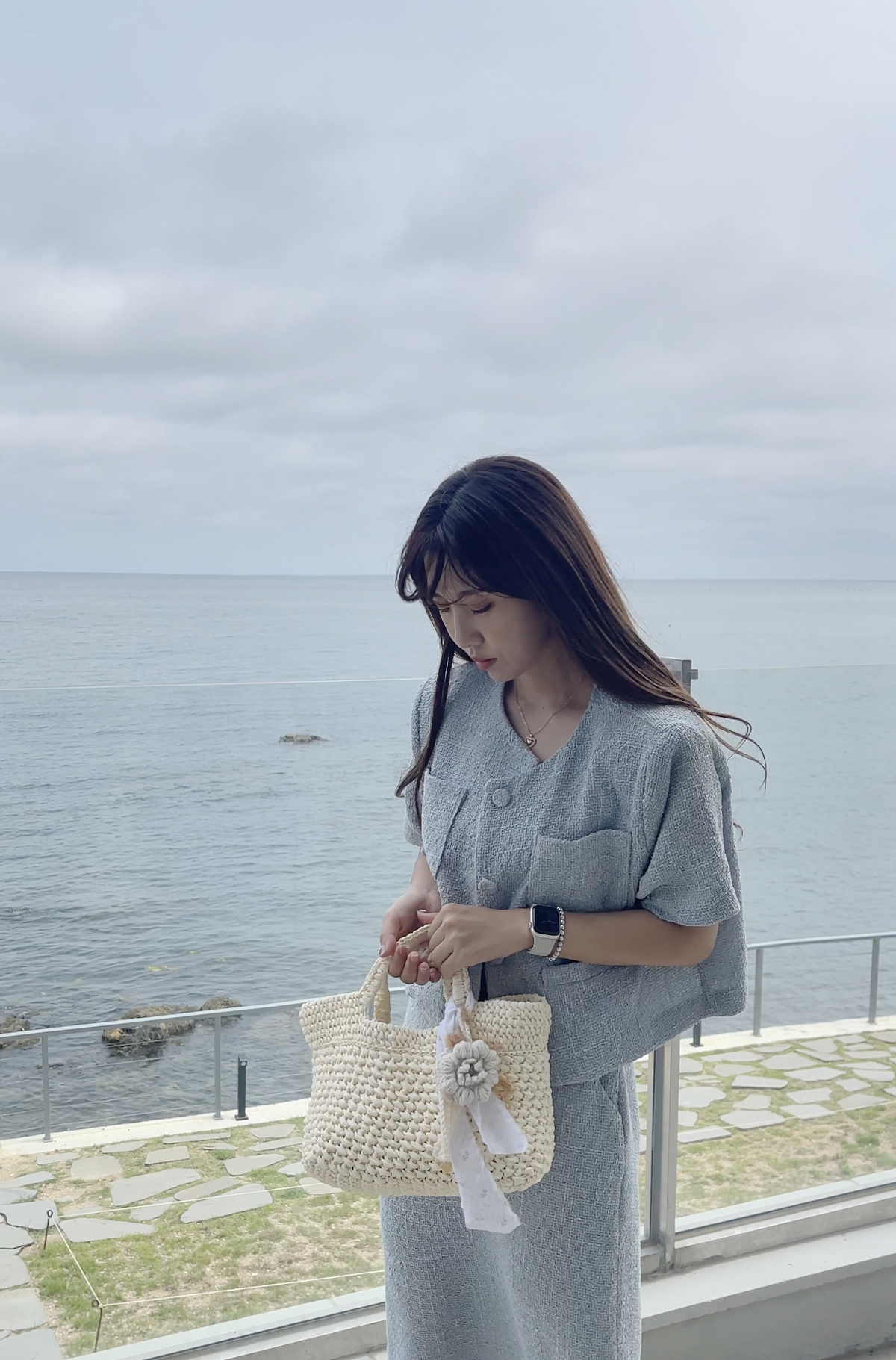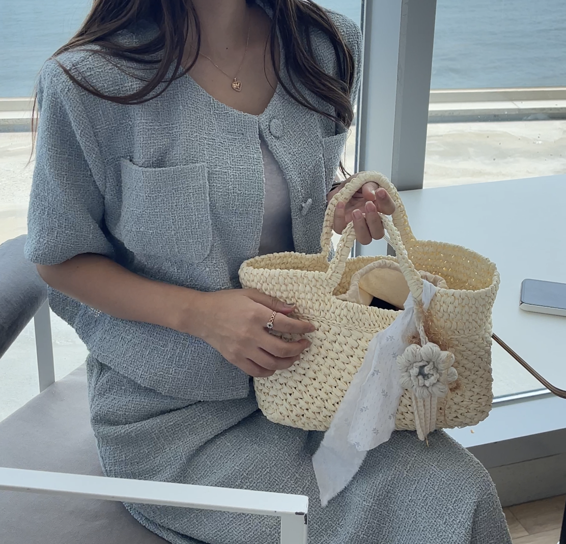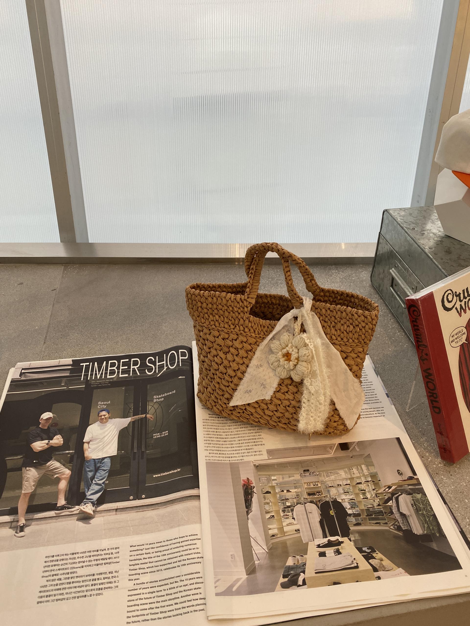와이드한 쉐입으로 바스켓백 스타일로 가방본체를 만들고