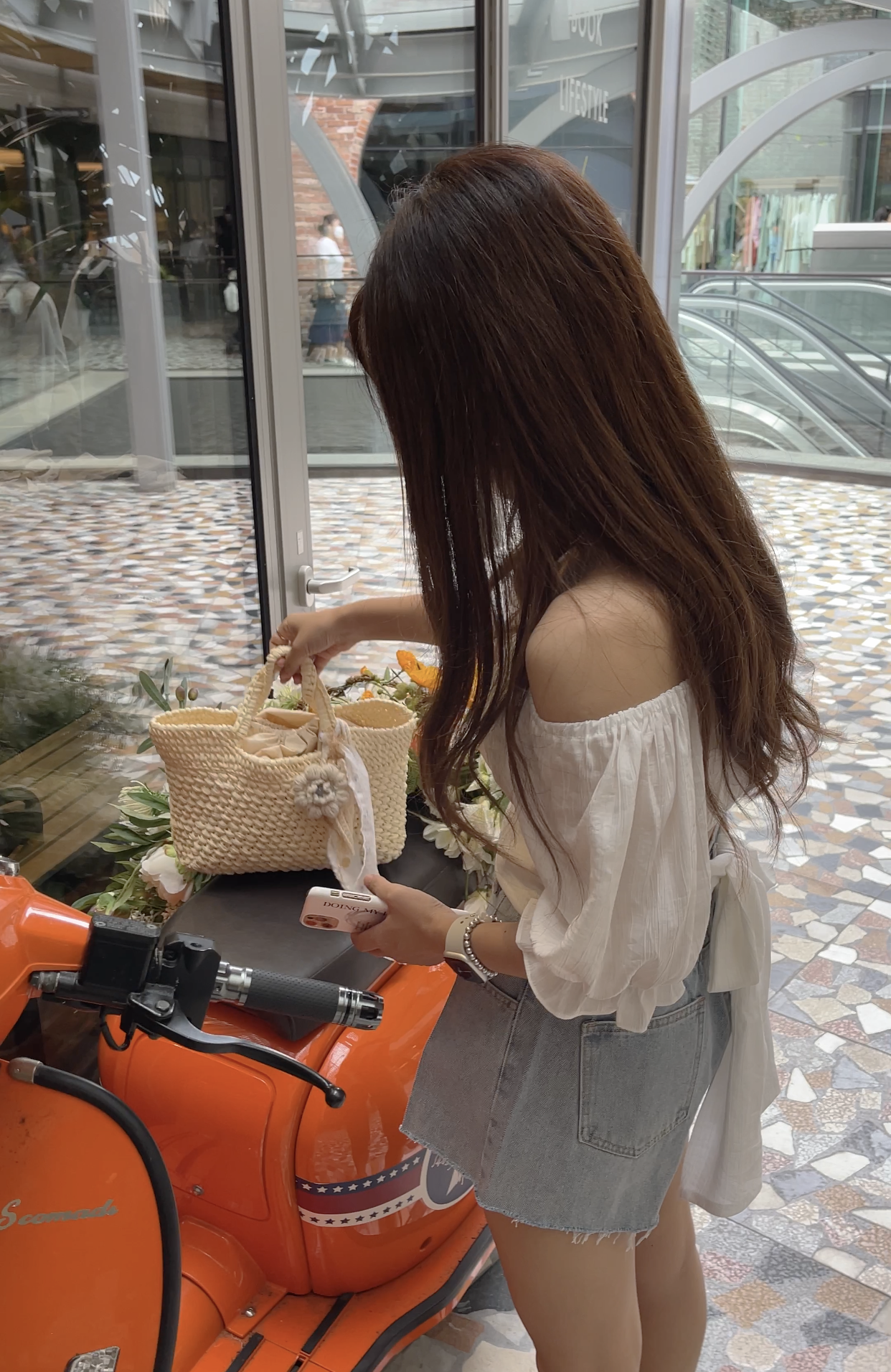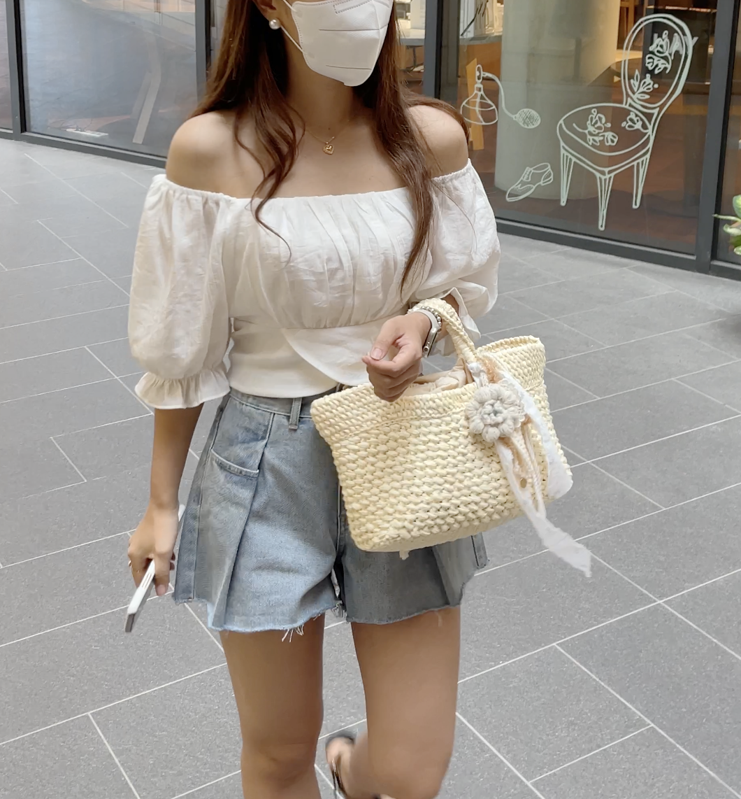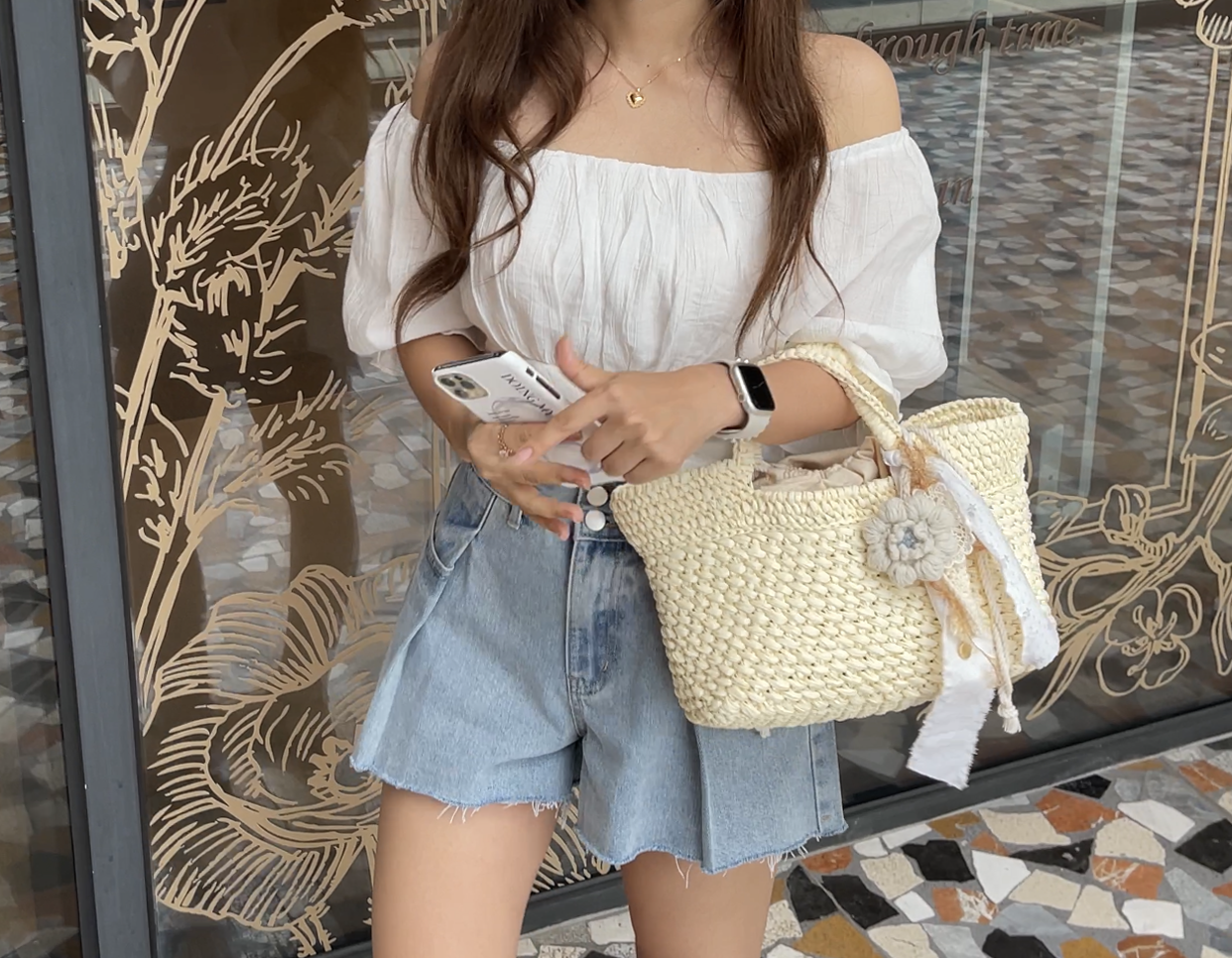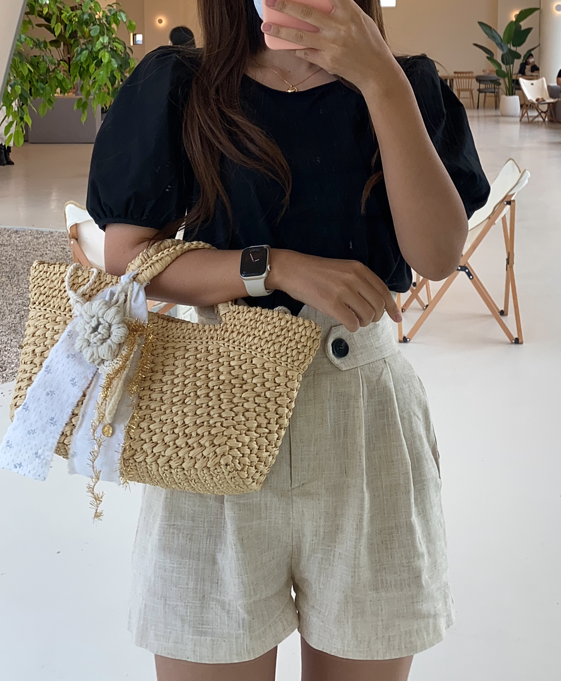 와이드한 쉐입으로 바스켓백 스타일로 가방본체를 만들고