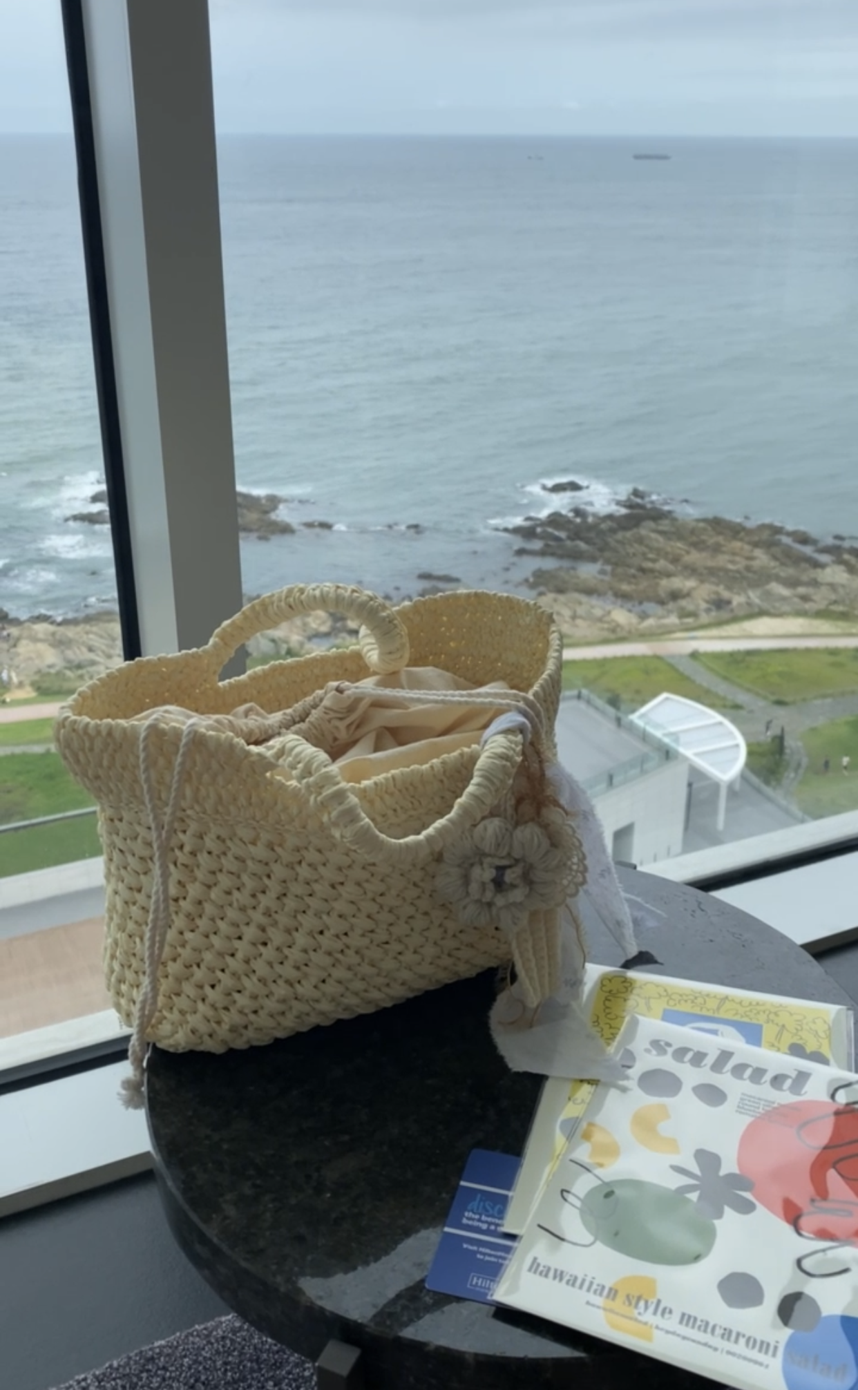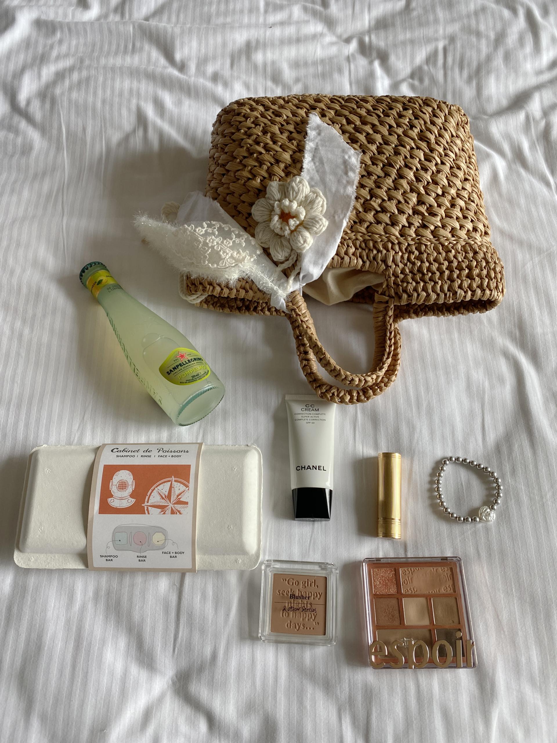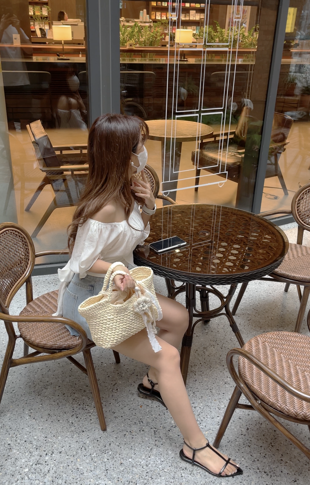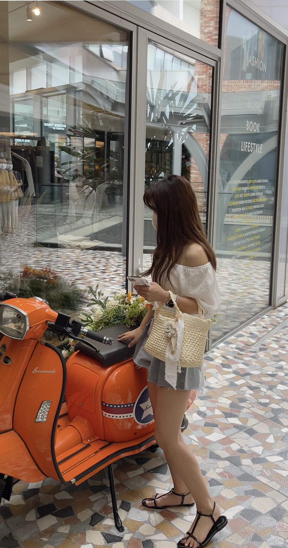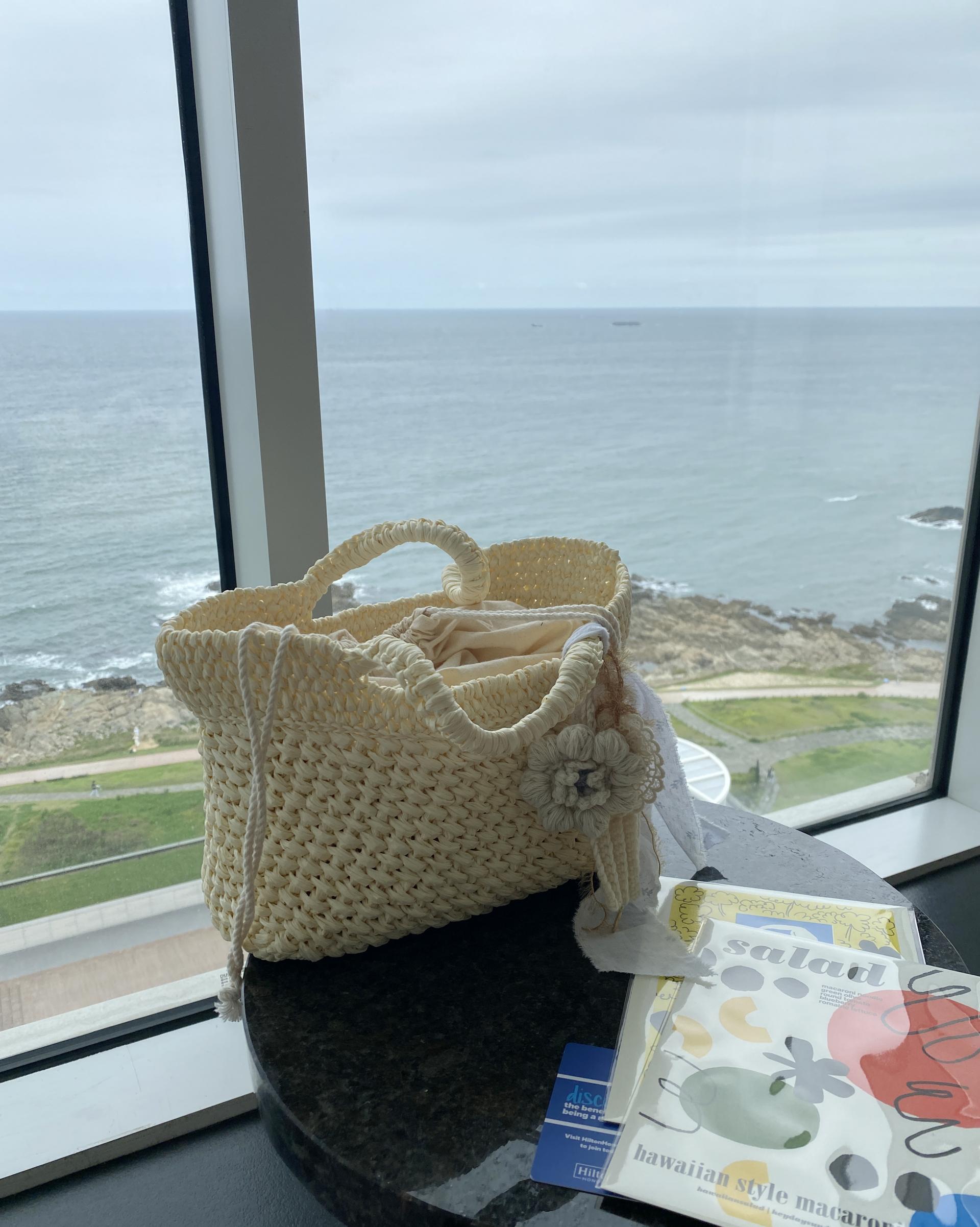 와이드한 쉐입으로 바스켓백 스타일로 가방본체를 만들고