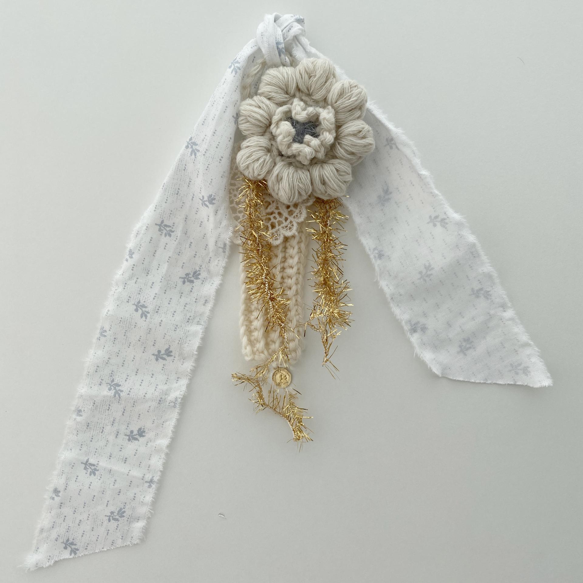 꽃 제작실 / 직사각형 장식용 털실 / 꽃수 부분 수세미실(연그레이) / 금색 이음실 / 레이스 / 코인 장식