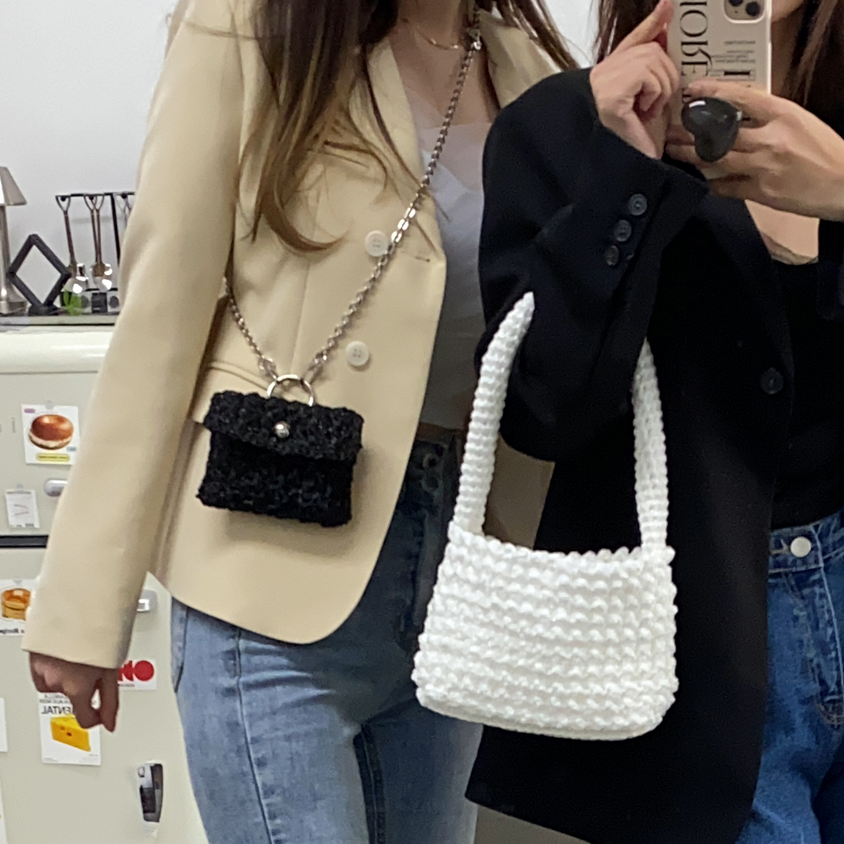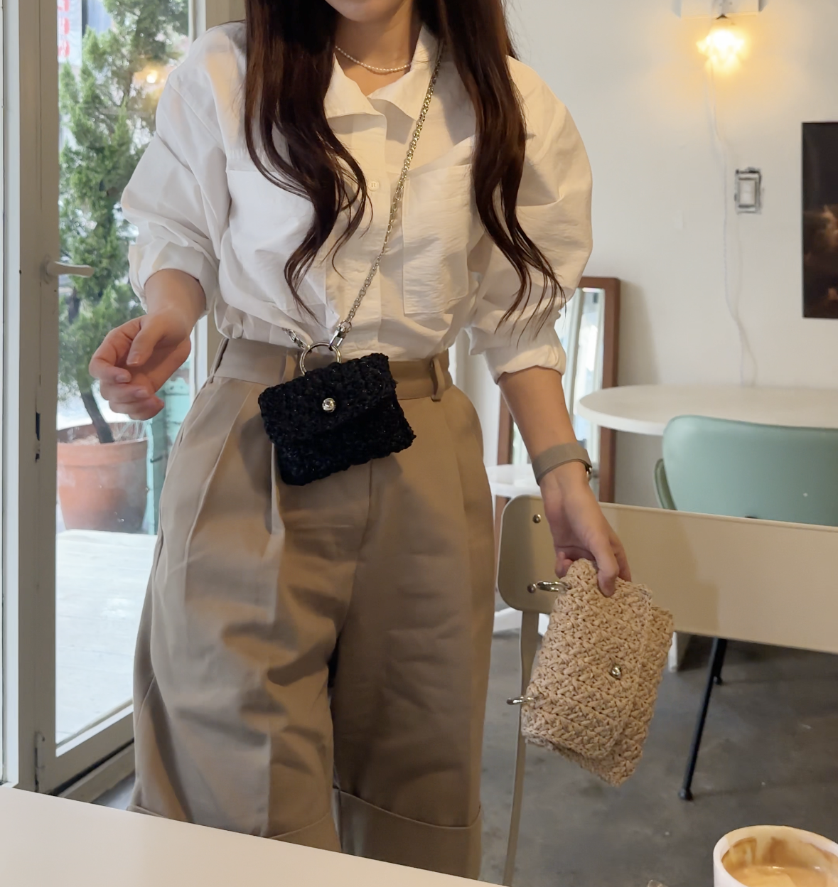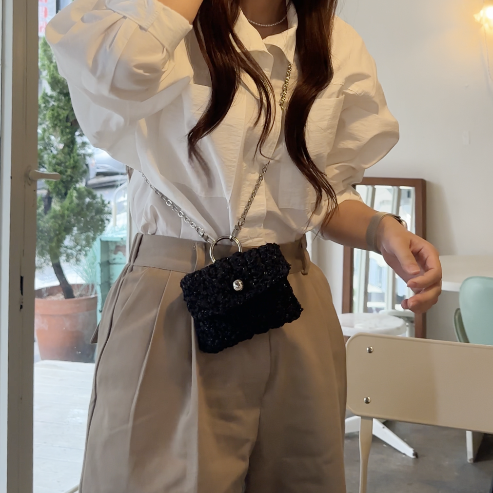 이런 작은 가방들은 크로스끈 길이가 짧아야 예쁘게 때문에 짧은 체인끈으로 준비했습니다.