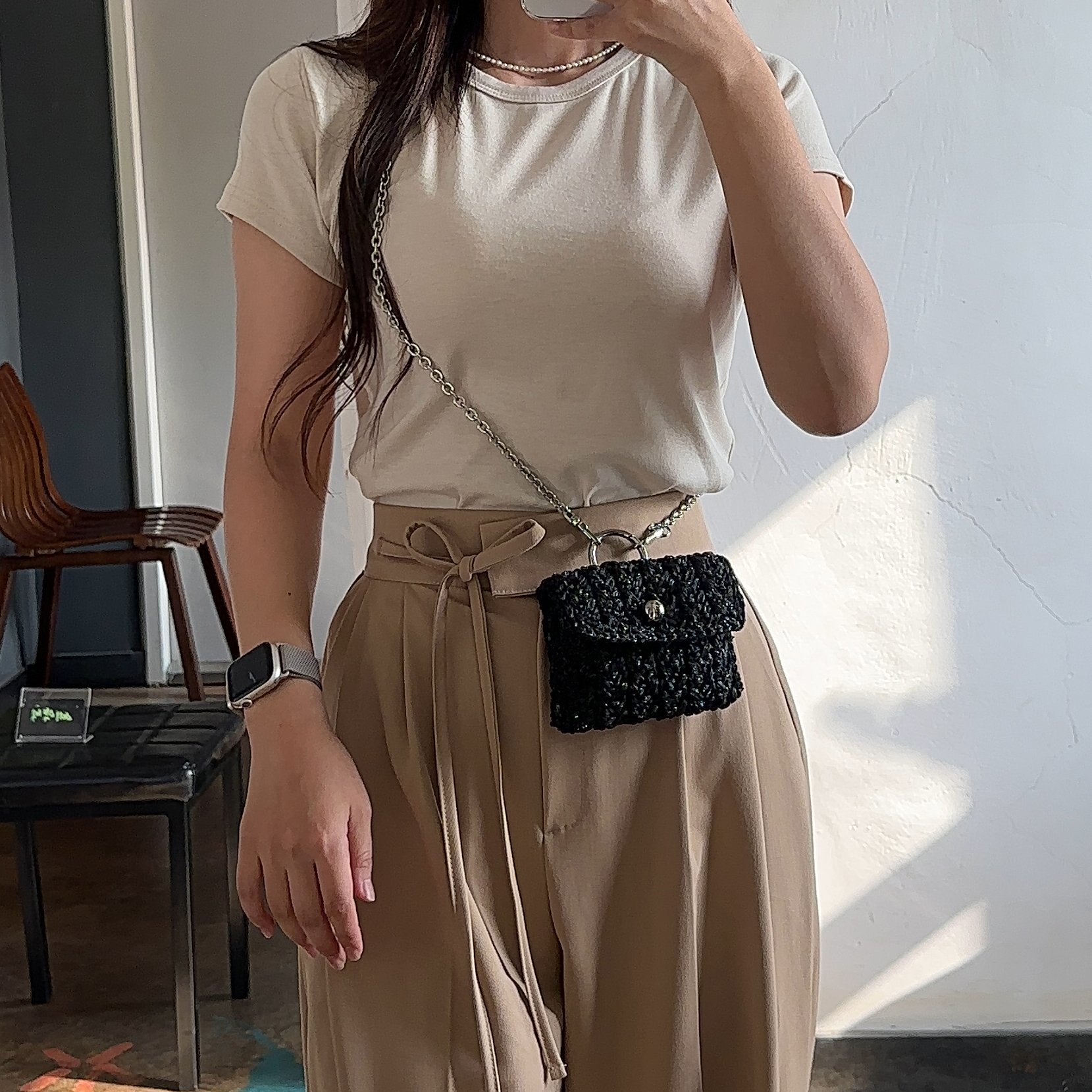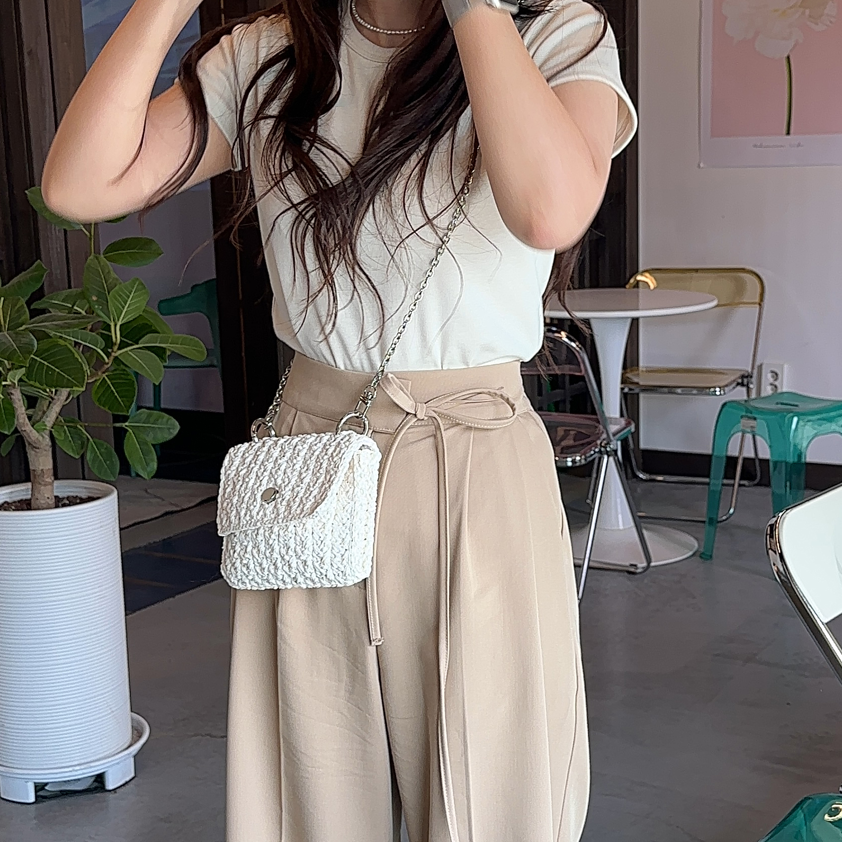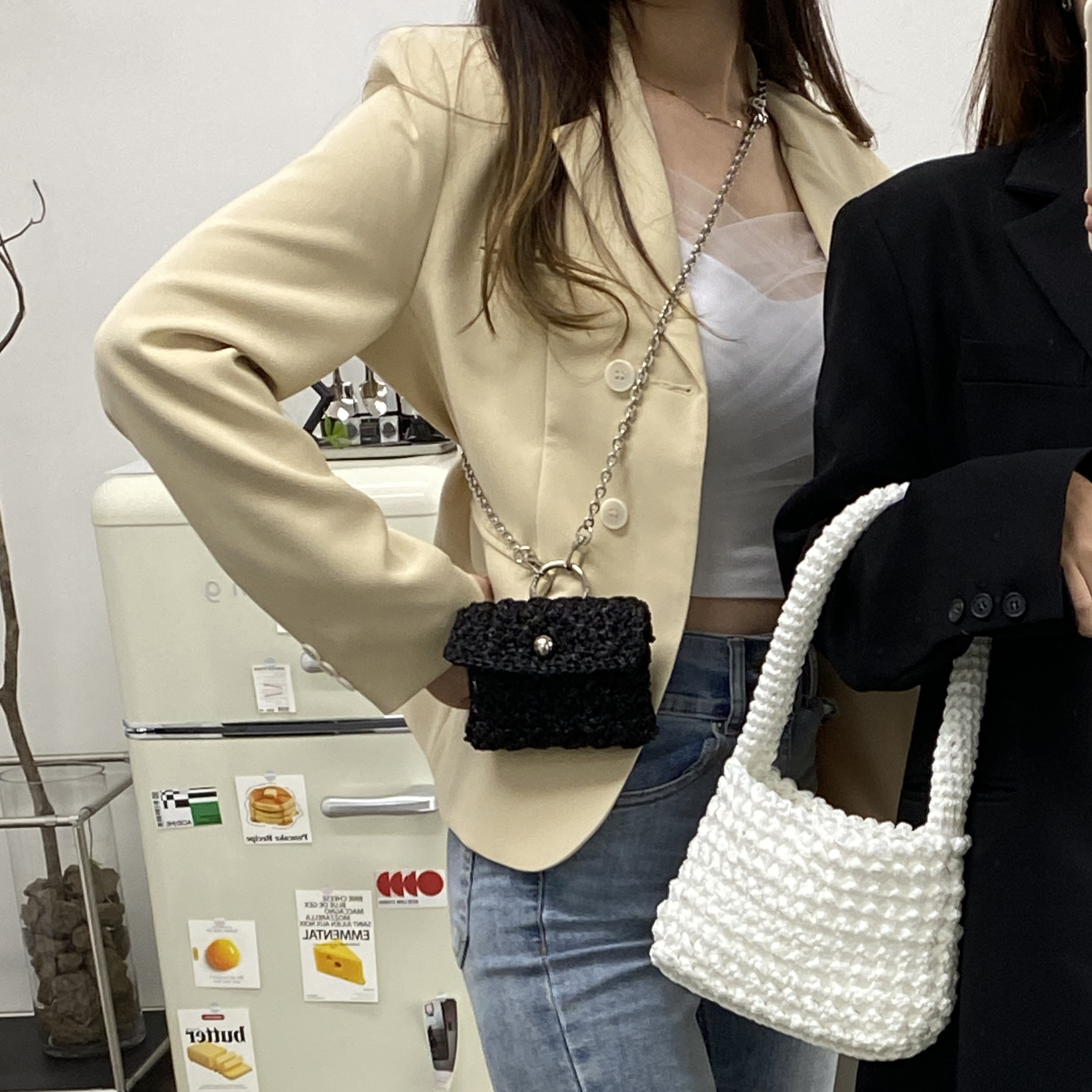 이런 작은 가방들은 크로스끈 길이가 짧아야 예쁘게 때문에 짧은 체인끈으로 준비했습니다.