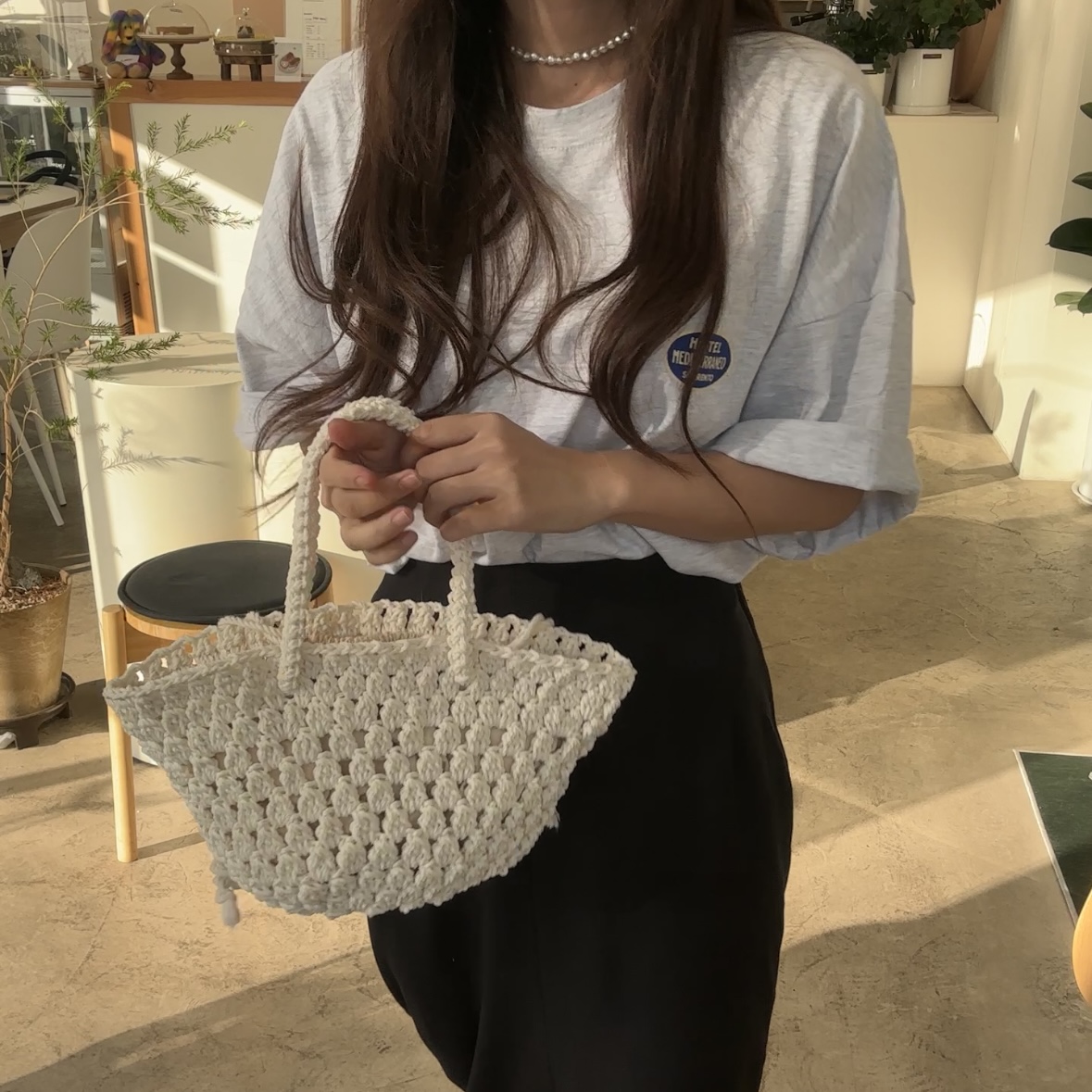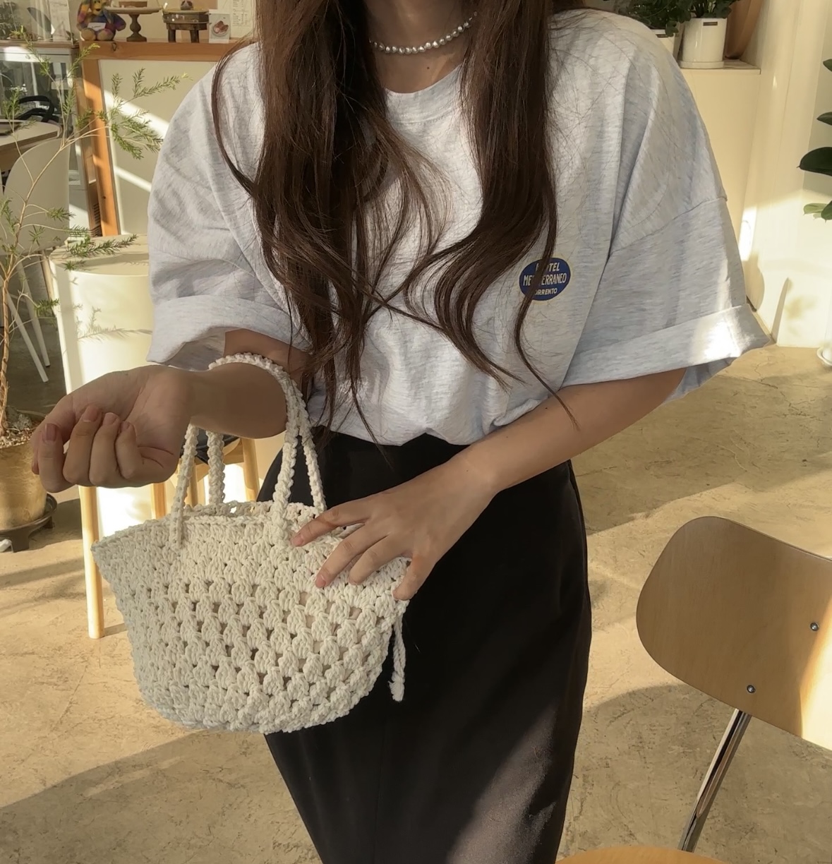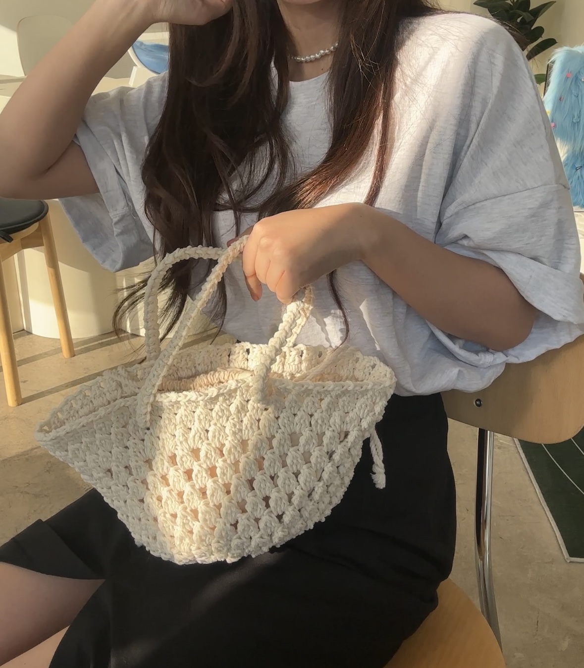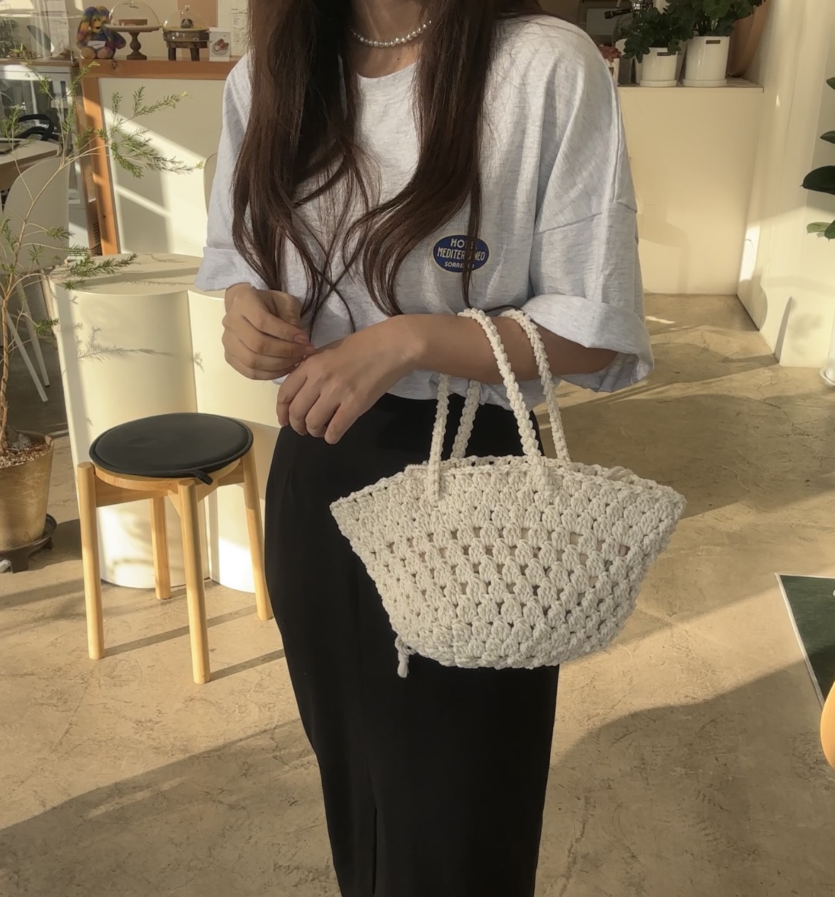 실 1볼로 쉽고 빠르게 만드는 미니 사이즈의 가벼운 바스켓백 입니다.