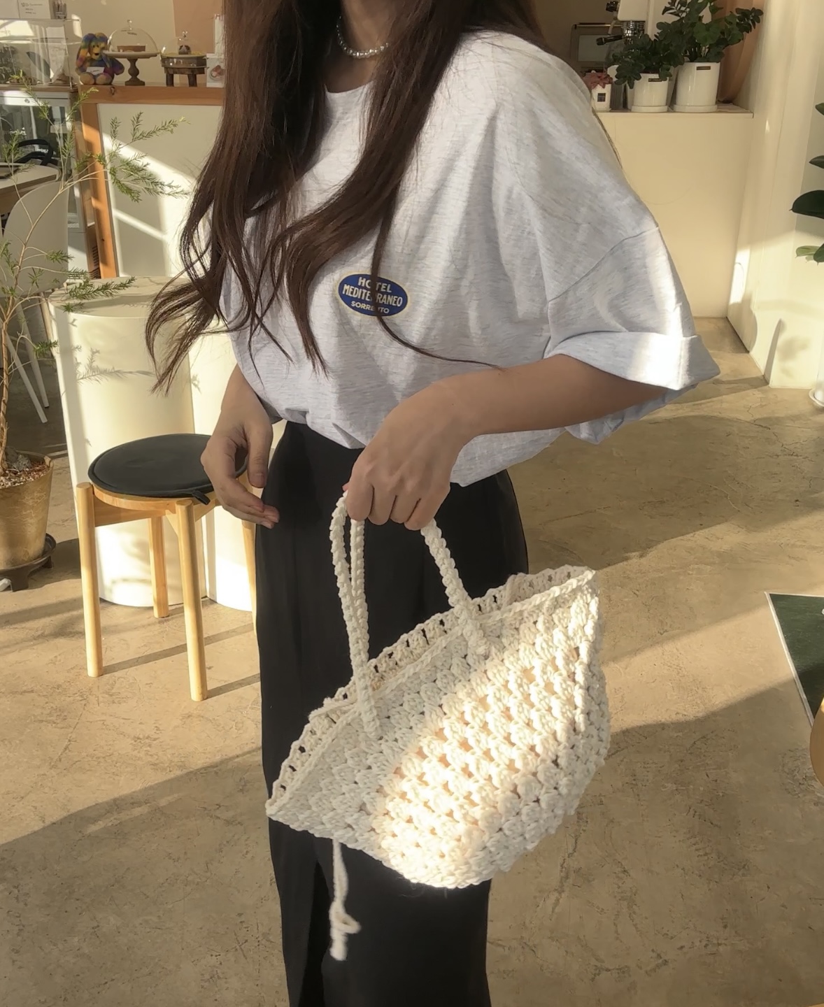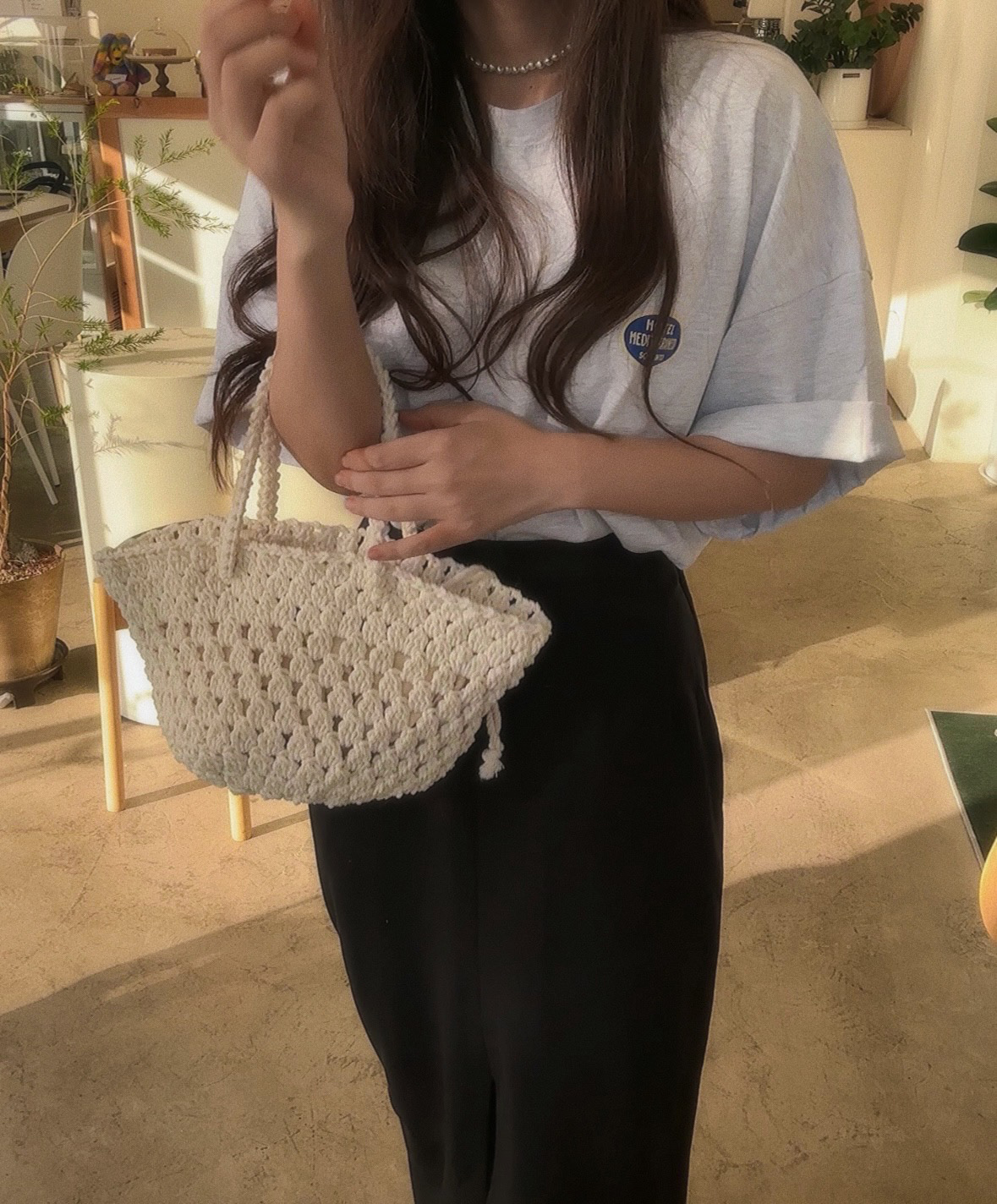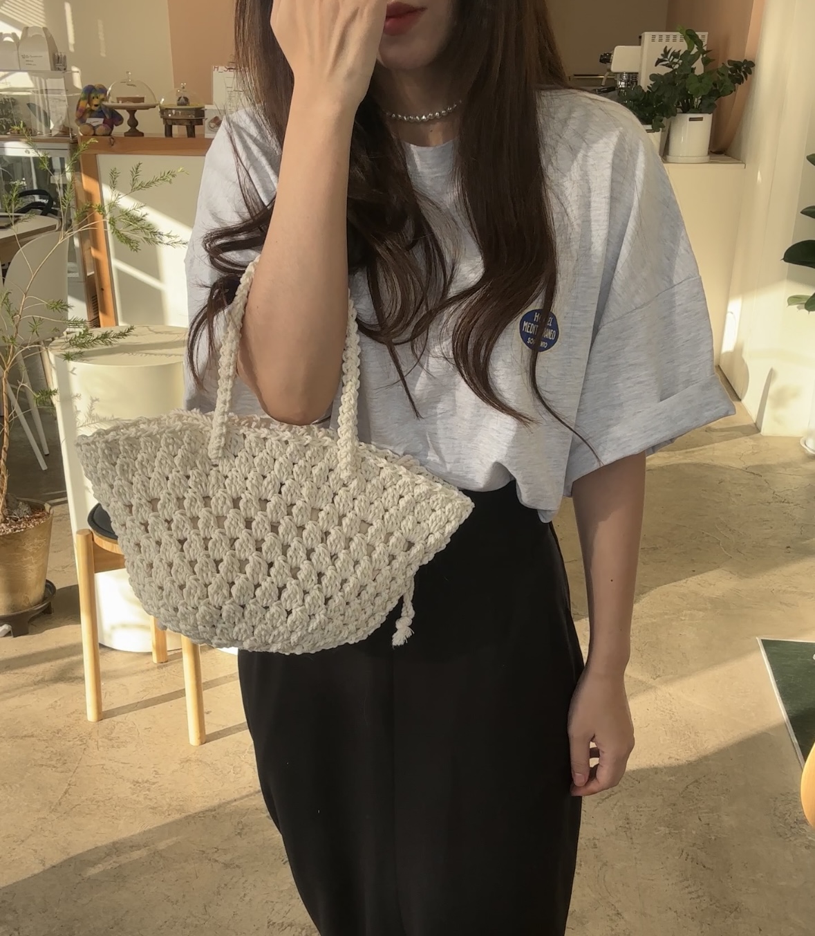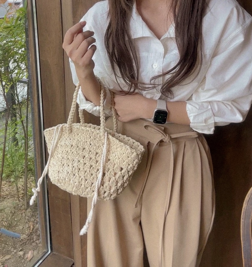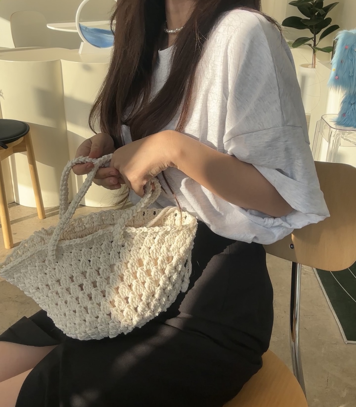 실 1볼로 쉽고 빠르게 만드는 미니 사이즈의 가벼운 바스켓백 입니다.