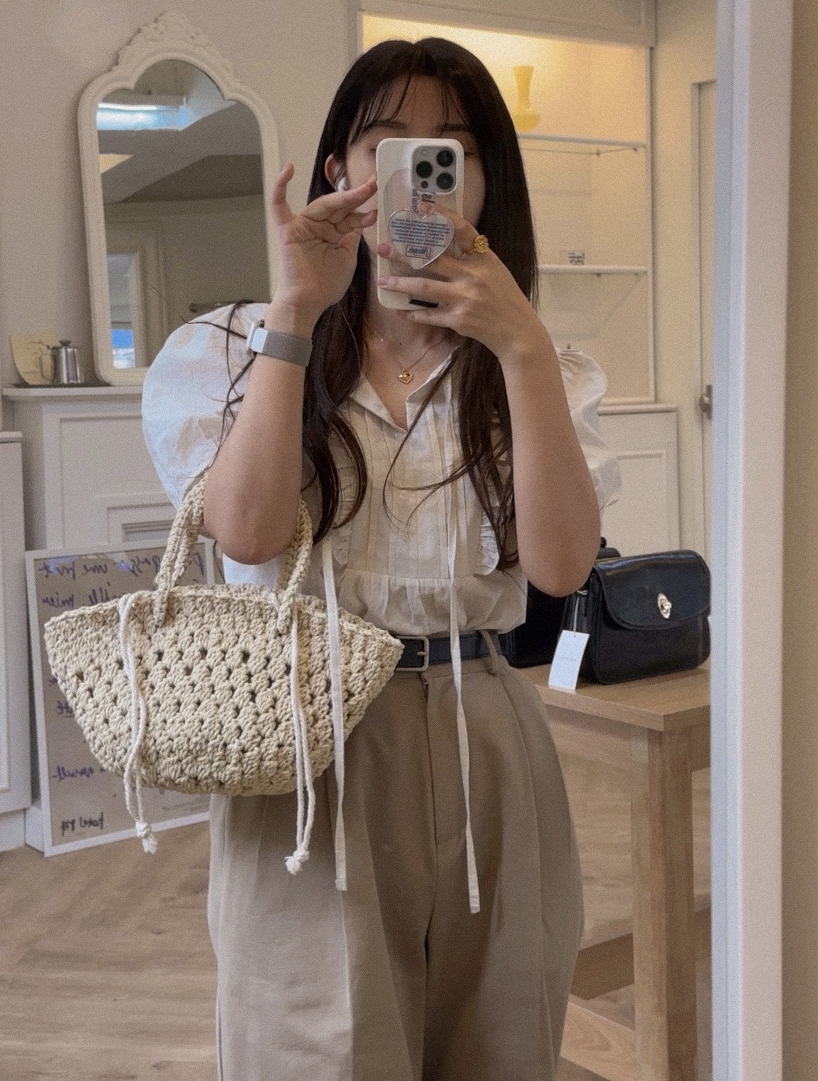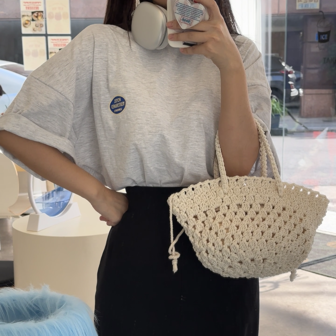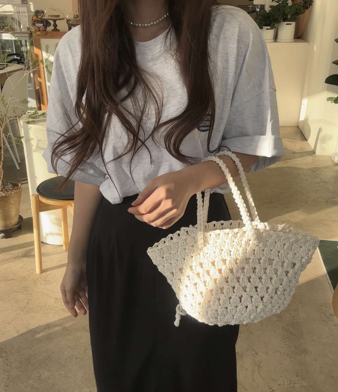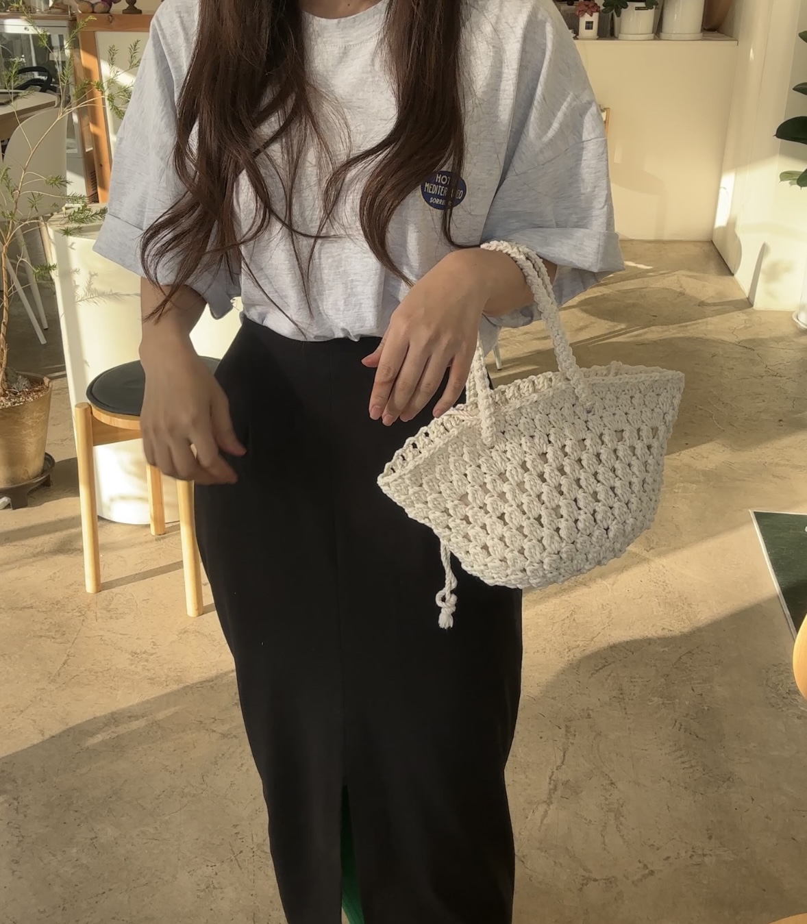 실 1볼로 쉽고 빠르게 만드는 미니 사이즈의 가벼운 바스켓백 입니다.