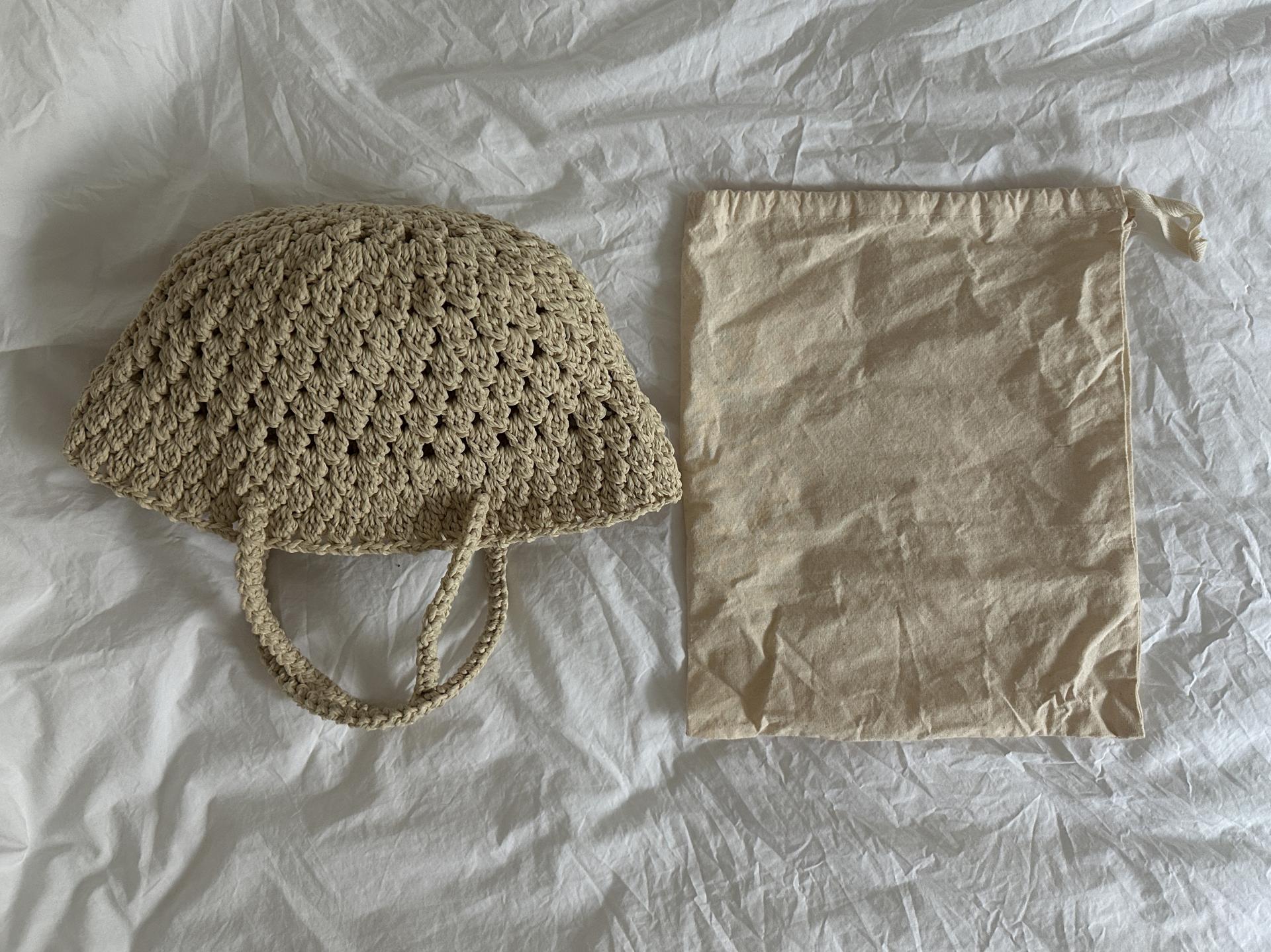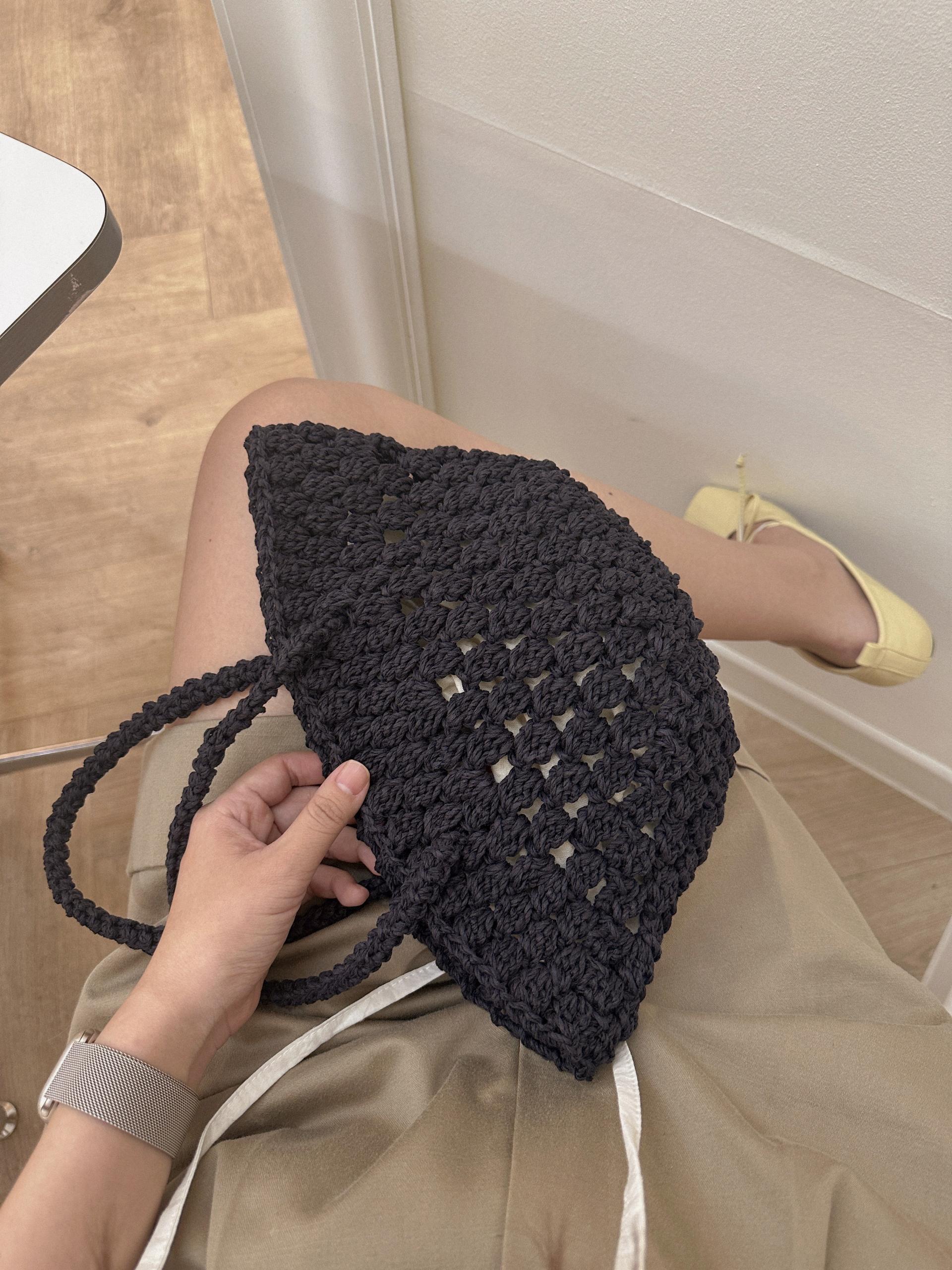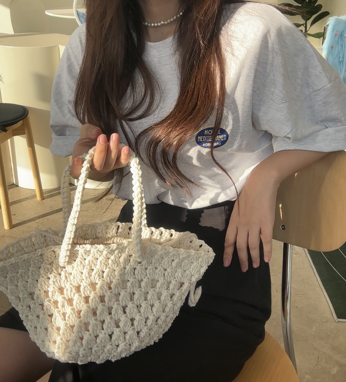 네츄럴 레이온 소재의 실로 도톰하며 완성후에는 실 특유의 느낌으로 탄탄, 탱글탱글한 느낌으로 가방 각이 잘 잡혀요 :)