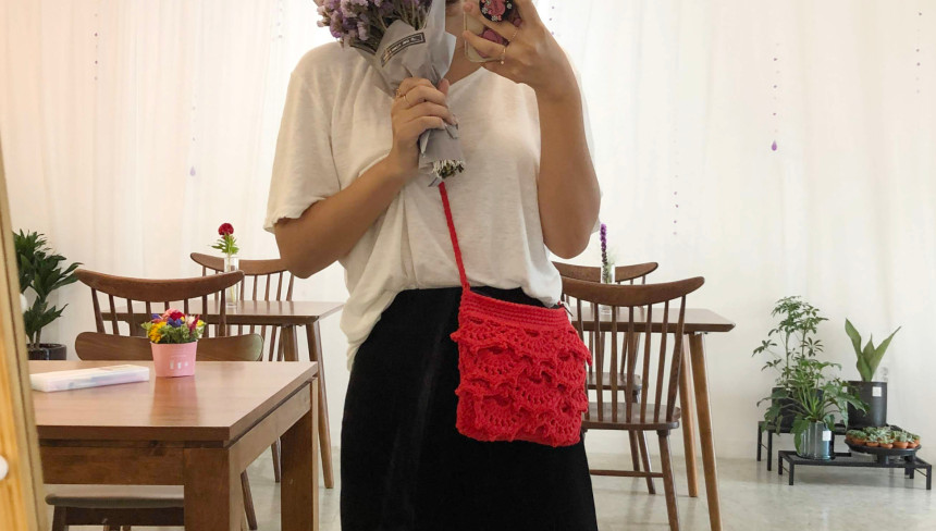 2개의 작품을 놓고 보았을 때 합사하여 제작한 작품의 크기가 가로 기준으로 1cm 정도 컸습니다.(7호 코바늘로 제작)