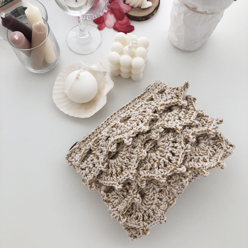 섬세한 디자인에 골드컬러가 합사되어 화려하고 고급스러워 졌습니다.