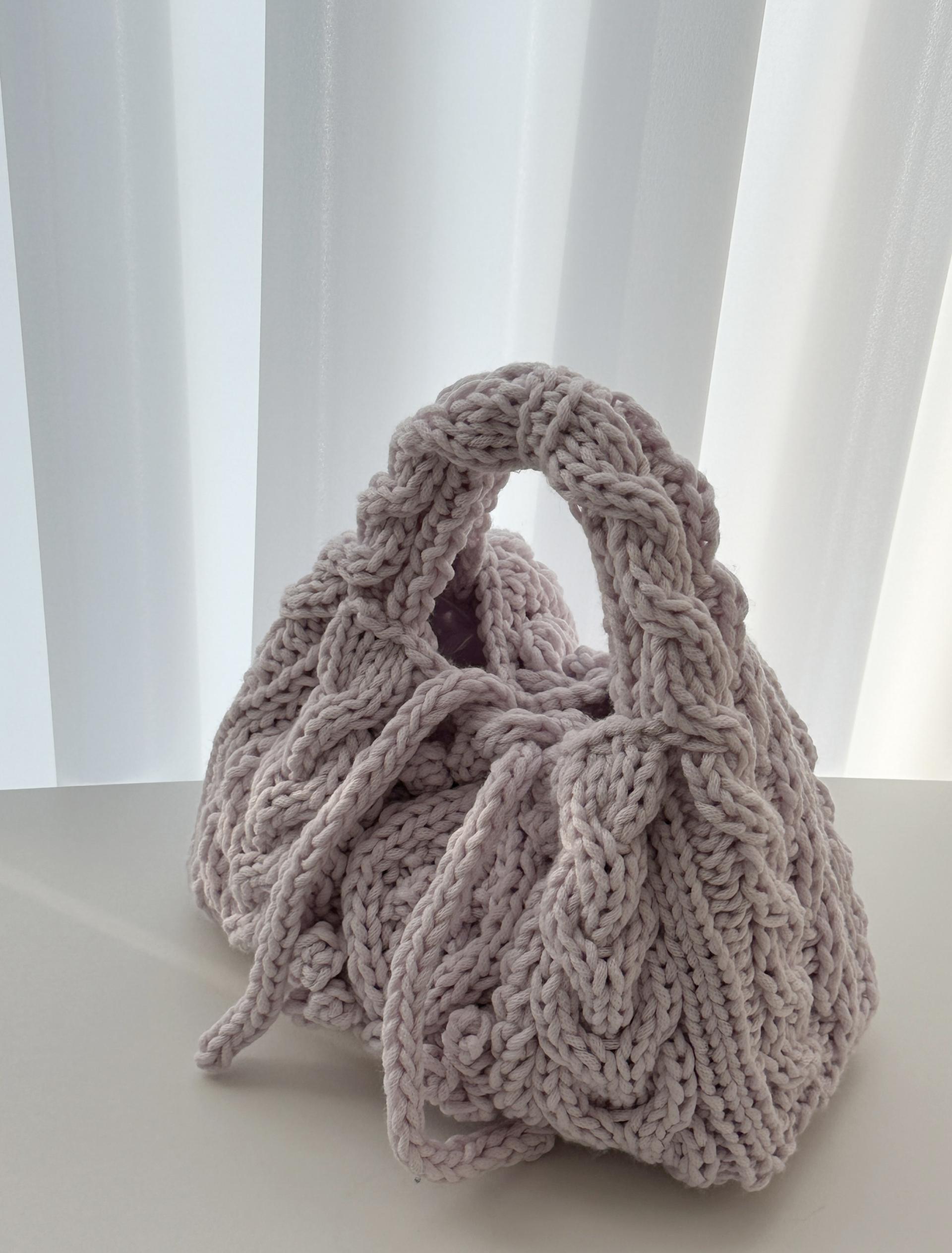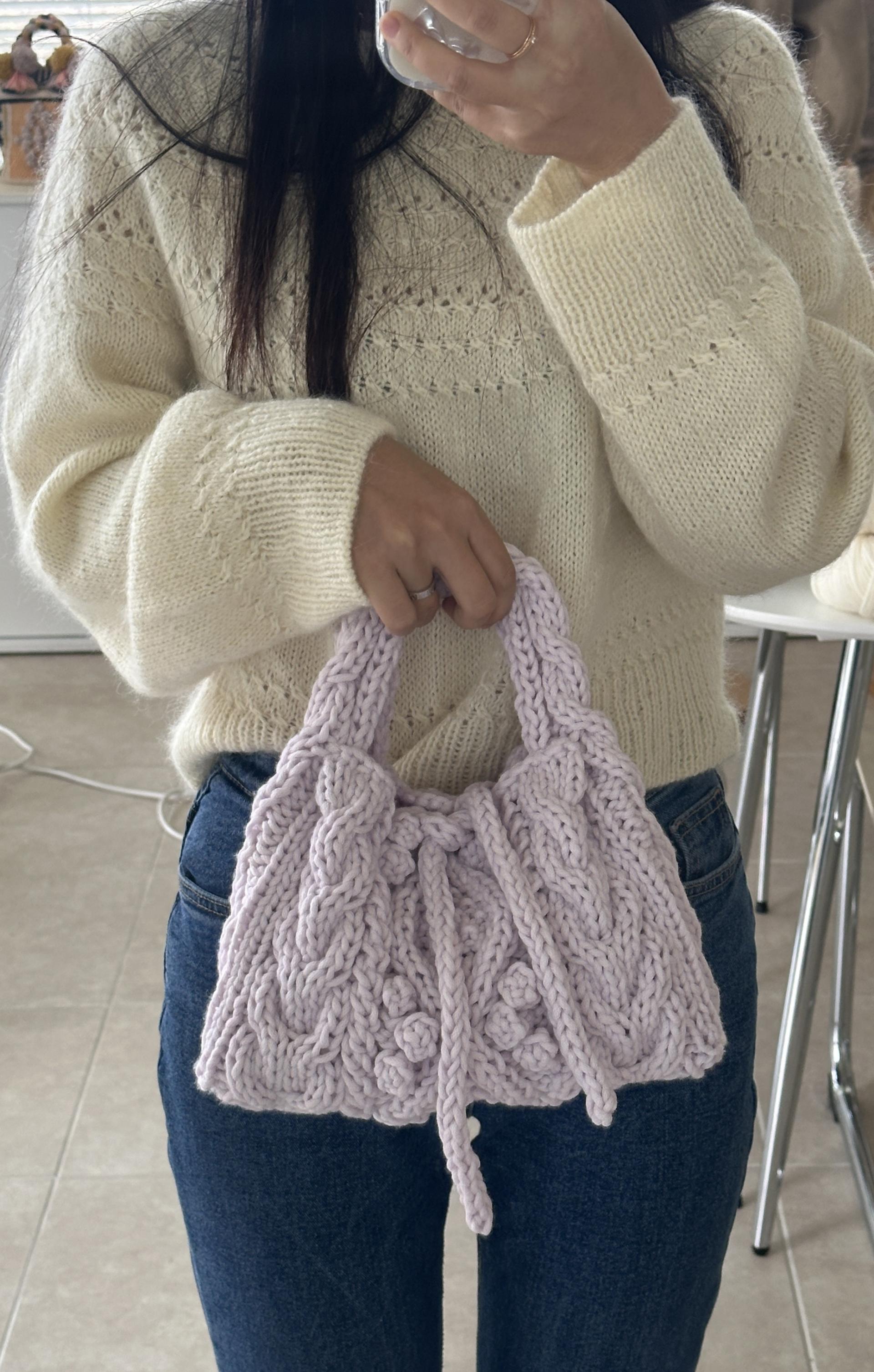 실 3볼로 가방편물 조각을 만들어준 후 네트망에 바느질하여 탄탄하게 완성하는 방식이예요.