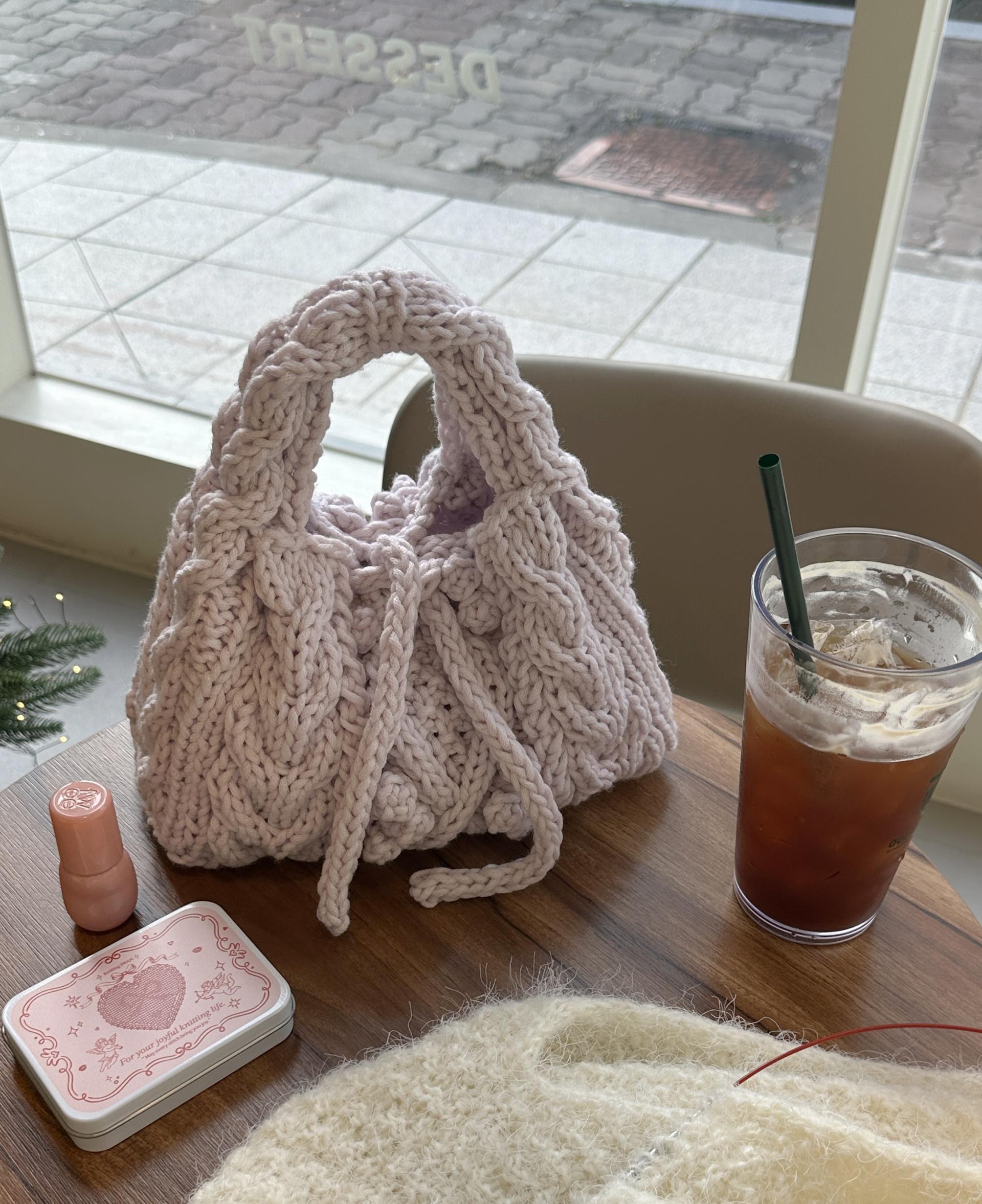굵은 대바늘로 만드는 아란무늬의 가방입니다.